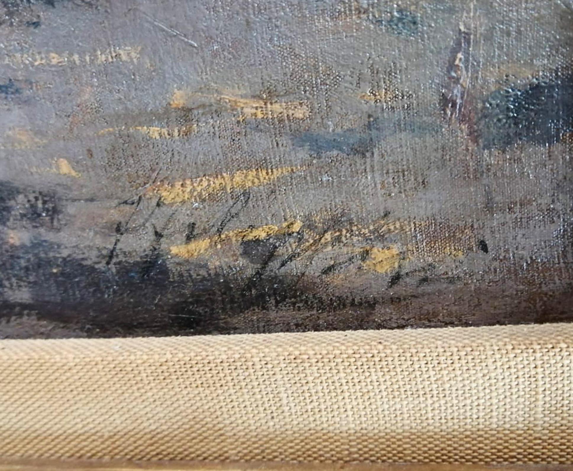 Francesco Filippini Brescia 1853 - Milano 1895 Galline sull'aia Olio su tela cm 53,5x95,5