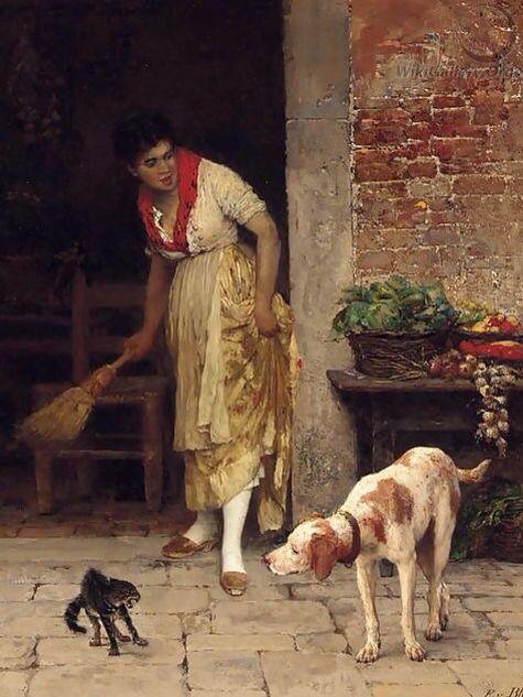 Eugenio De Blaas Albano Laziale 1843 - Venezia 1931 Cane e Gatto