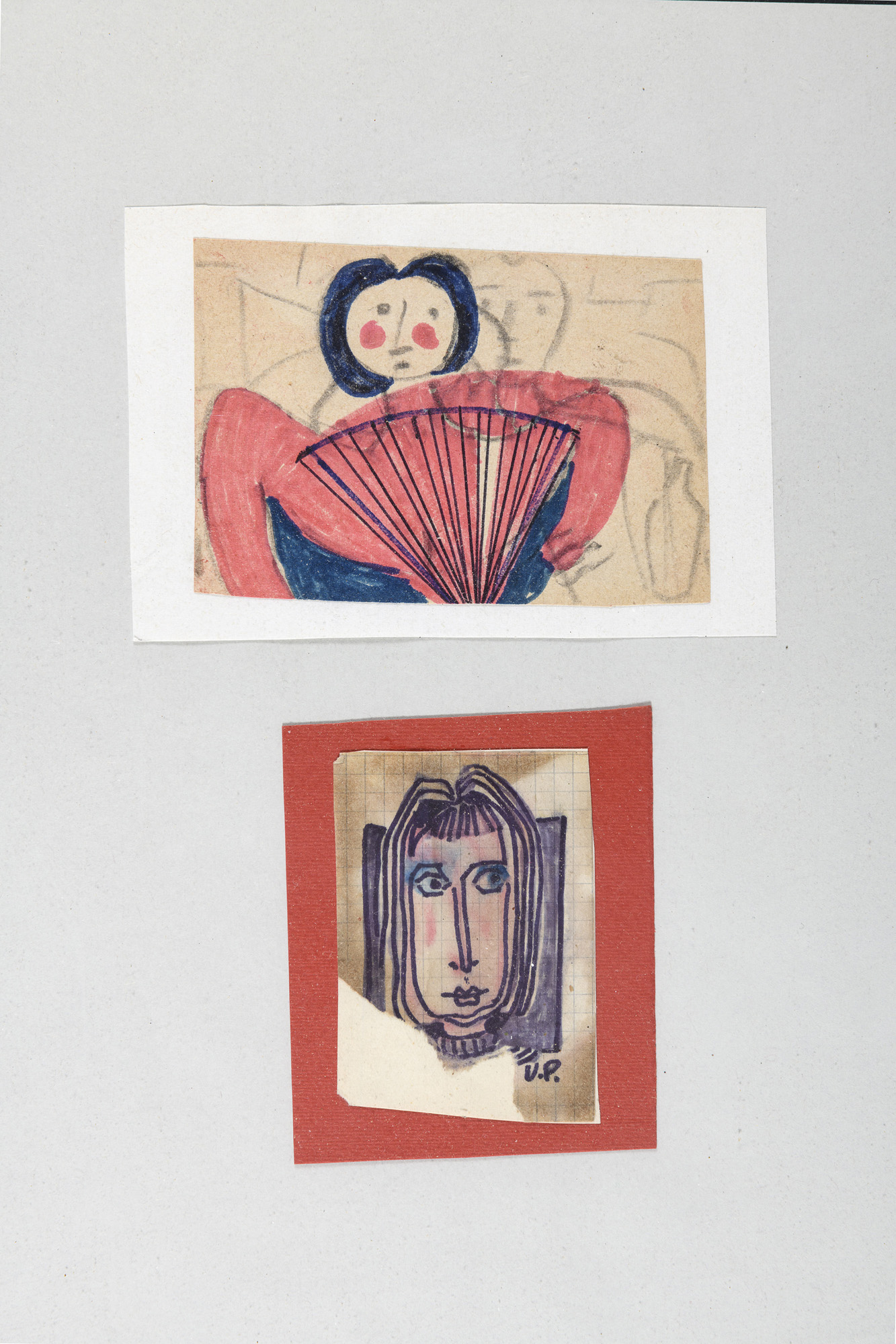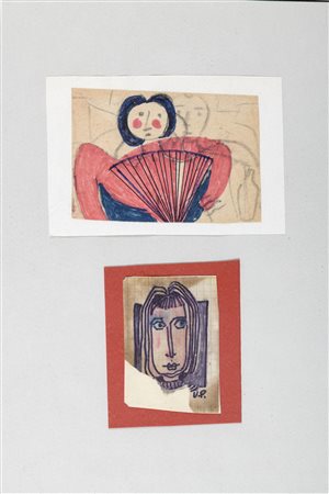 Due mini-disegni a tecnica mista su carta, cm. 7,5 x 11 e cm. 8 x 5,5