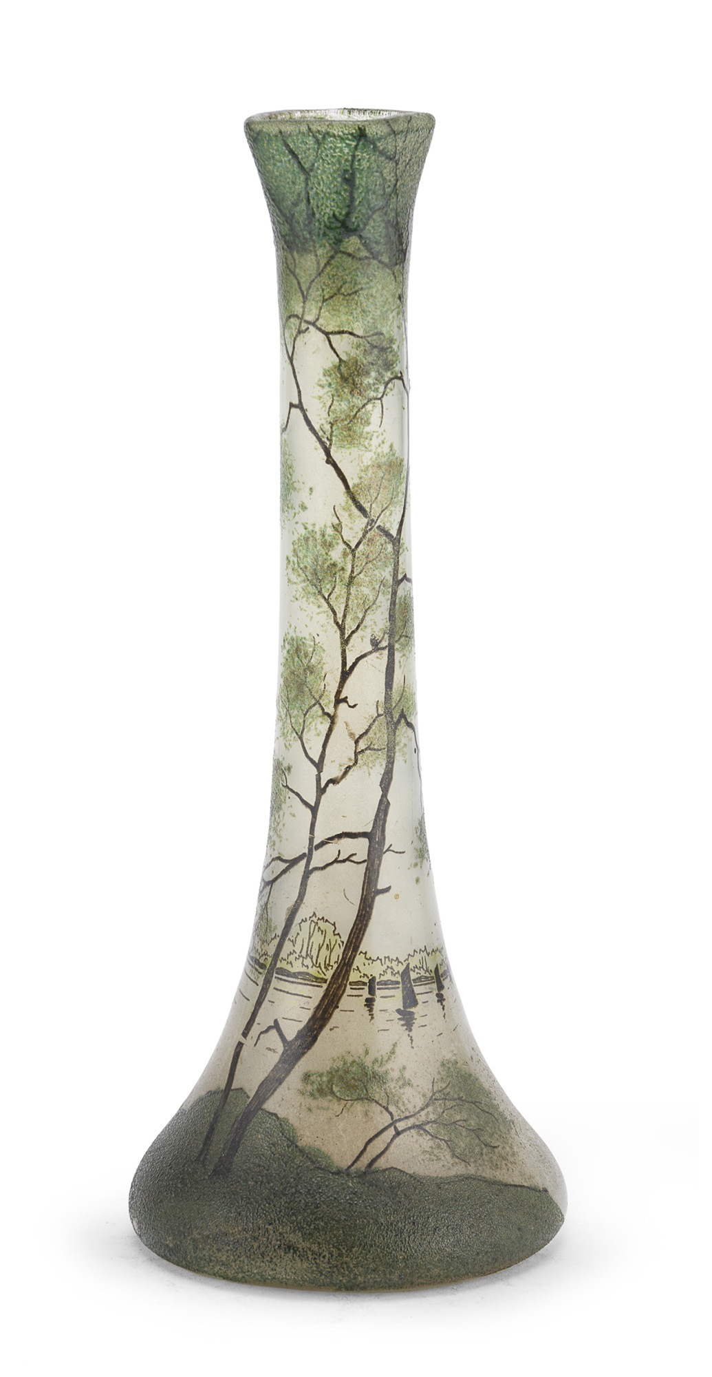 in pasta di vetro con decoro a paesaggio lacustre.
