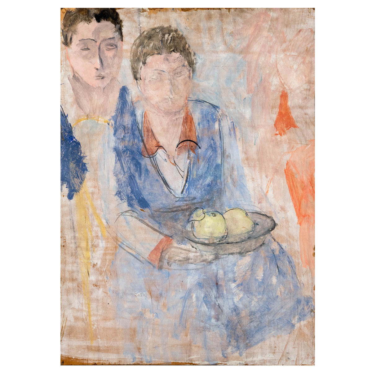 "Figure femminili", 1924 circa, olio su compensato, firmato in basso a destra, entro cornice