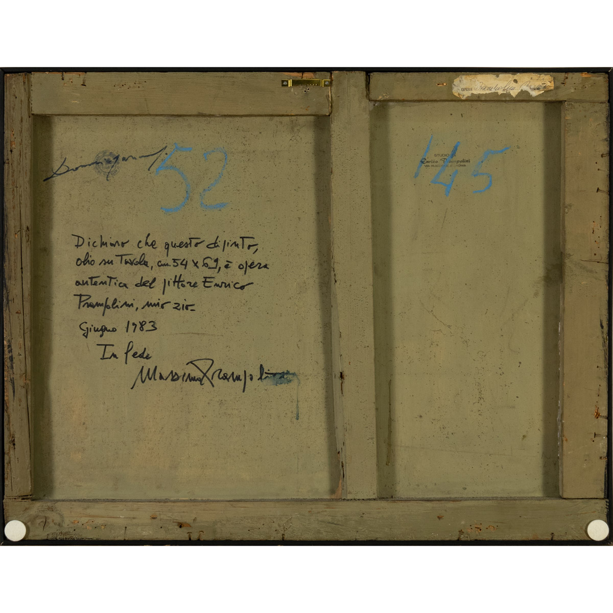 Autentica di Massimo Prampolini sul retro e timbro dell'Atelier Prampolini, Roma.