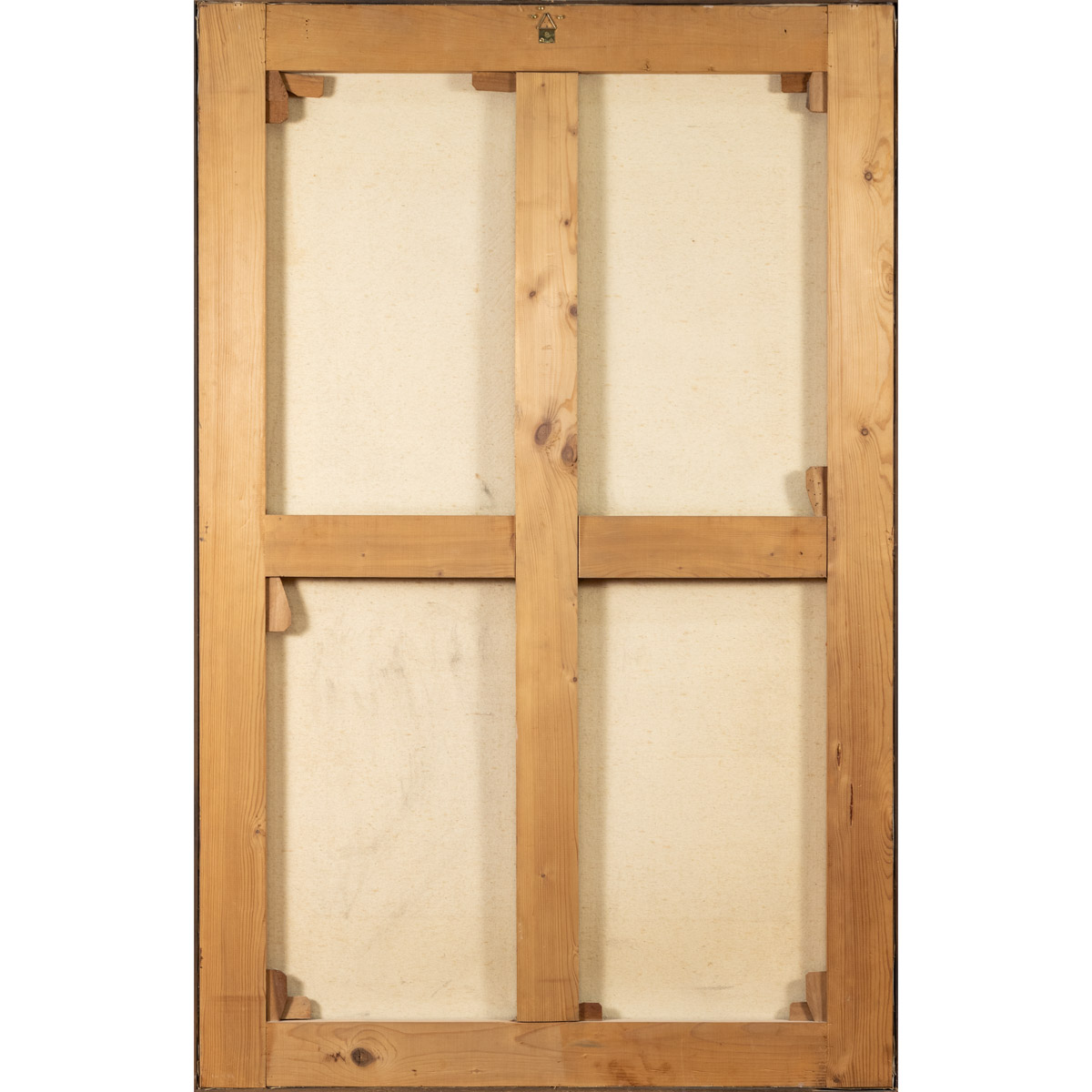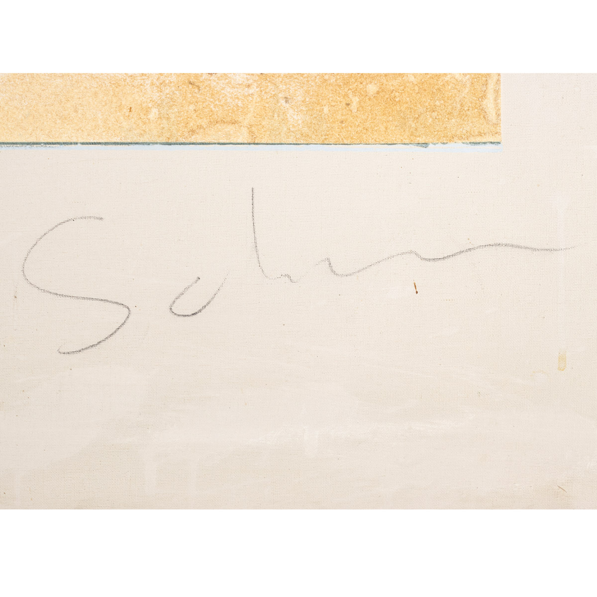 "Senza titolo", prima metà anni 70, serigrafia monotipo su tela, firmata in basso a destra, entro cornice