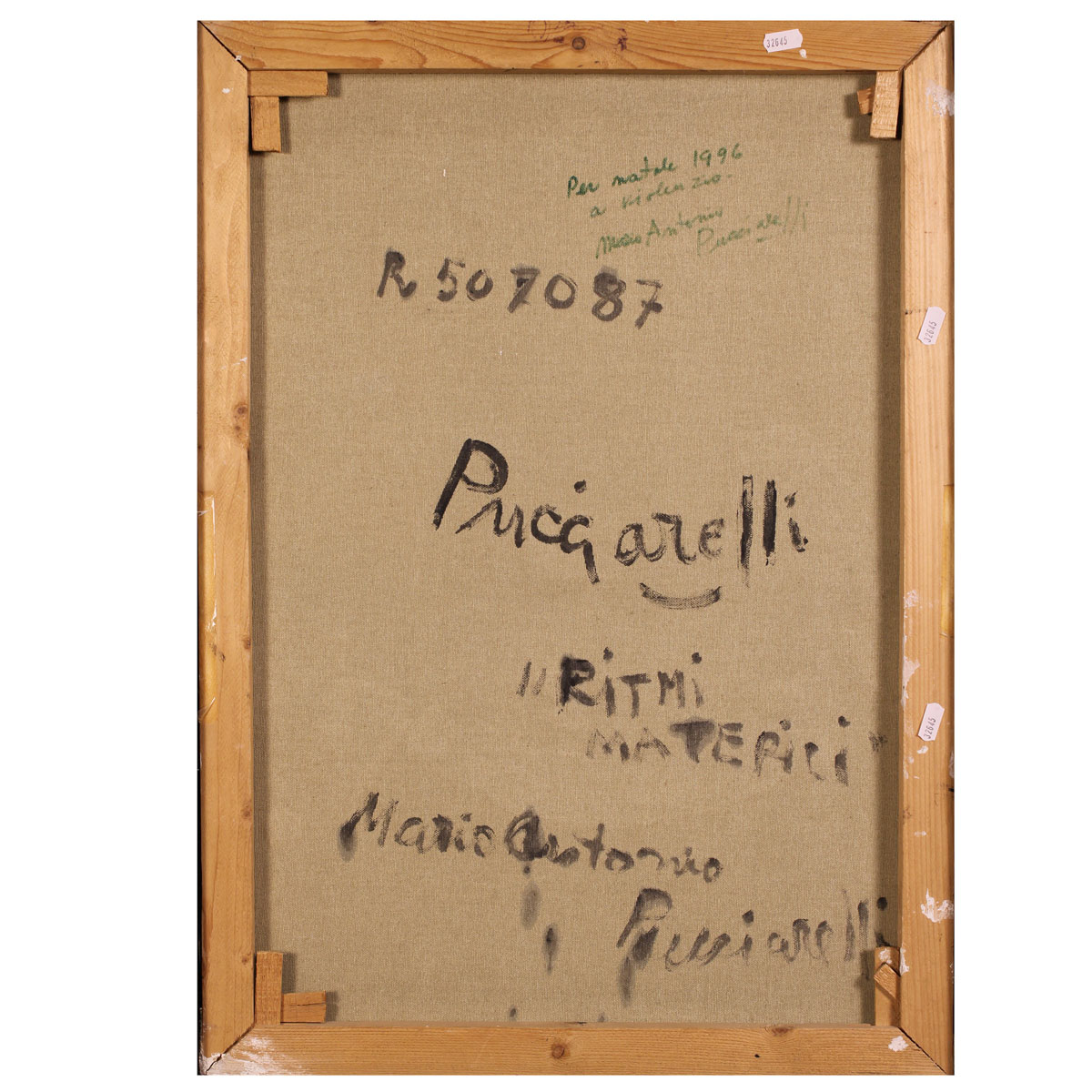 "Ritmi materici", anni 90, olio su tela, firmato a destra, titolato e firmato sul retro, entro cornice
