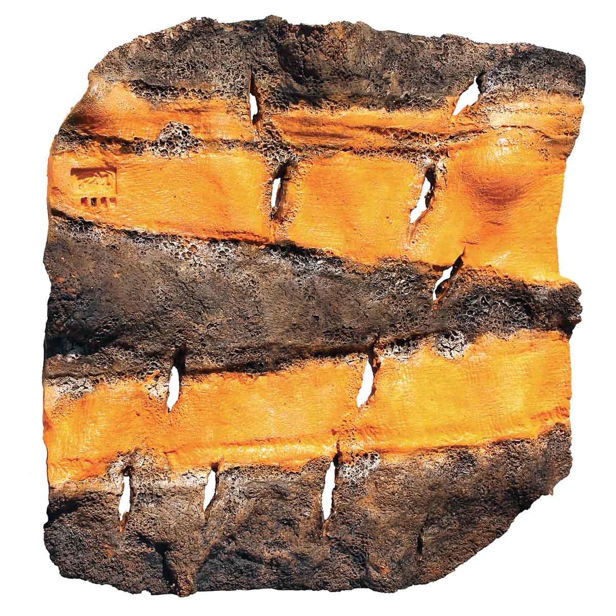 "Mutazioni", 2015, bassorilievo in terracotta a patina policroma, timbro dell'artista, entro cornice