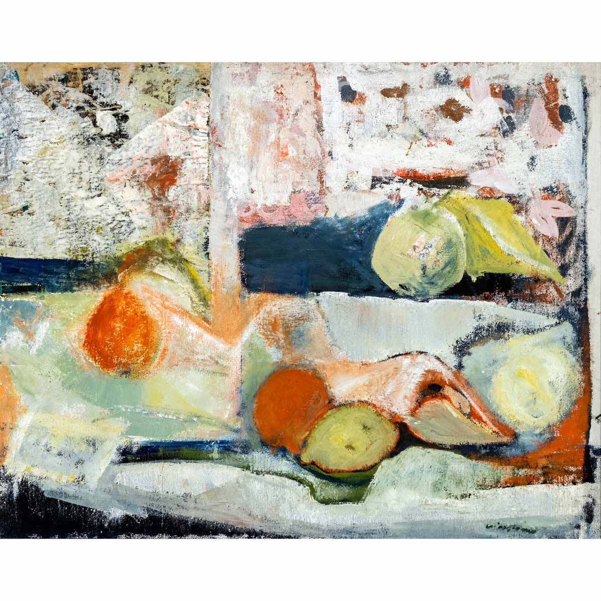 "Natura morta", 1980, olio su tela, firmato in basso a destra, firmato sul retro, entro cornice