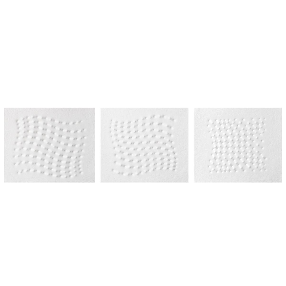 "Superficie I - Superficie II - Superficie III", 1995, tre rilievi eseguiti con impressione a secco su carta, es. 27/100, firmati e datati a matita in basso a destra.