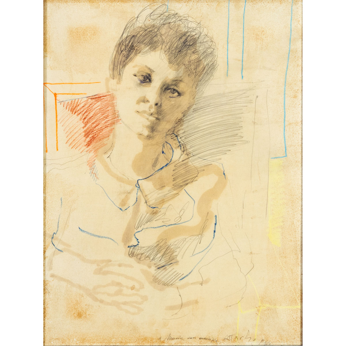 "Ritratto di Maria Carbone", tecnica mista su carta intelata, firmata con dedica in basso a destra, entro cornice