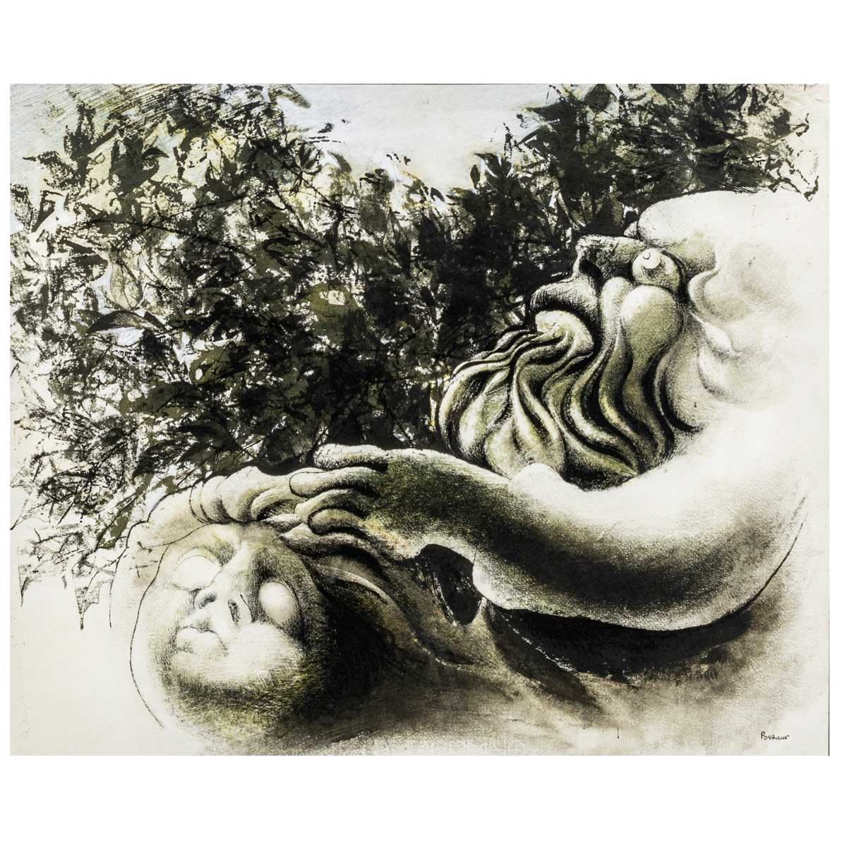 "Bomarzo", 1961, china e tempera su carta, firmata in basso a destra, entro cornice
