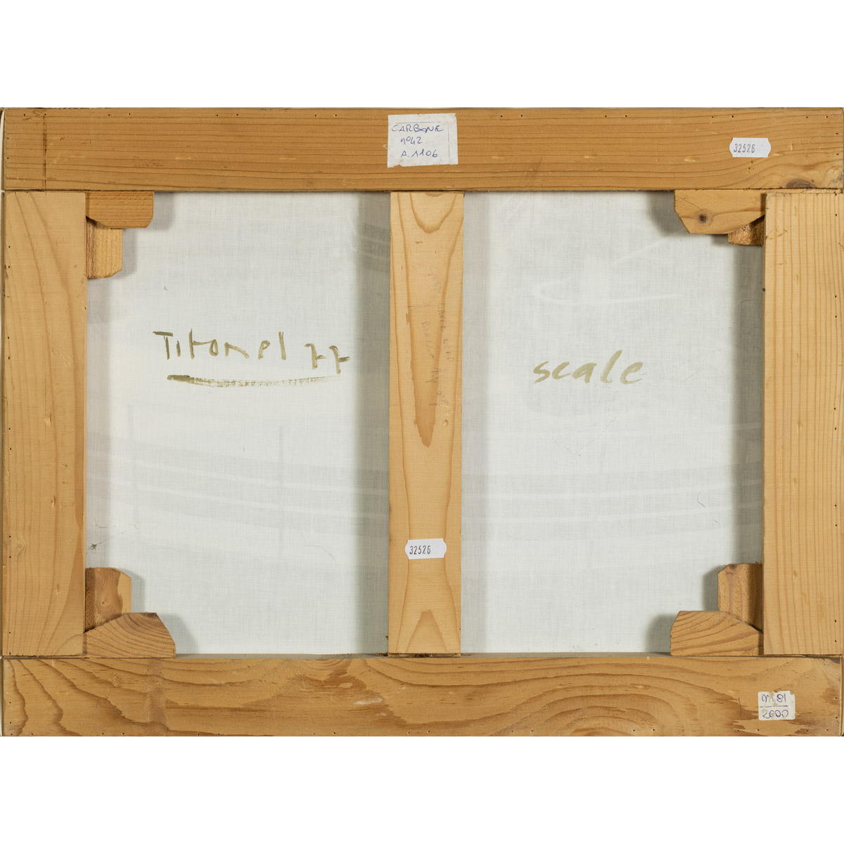 "Scale", 1977, tecnica mista su tela, firmata, datata e titolata sul retro, entro cornice