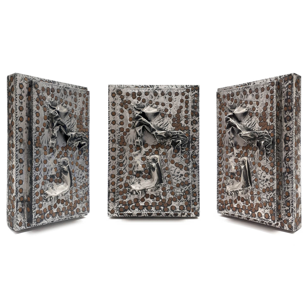 "Piccola formella", 1981, scultura in metallo, firmata, titolata e datata con dedica sul retro