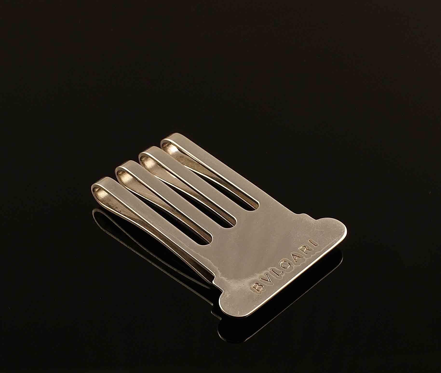 Fermasoldi in argento firmato Bulgari, gr. 21,6 con custodia originale.