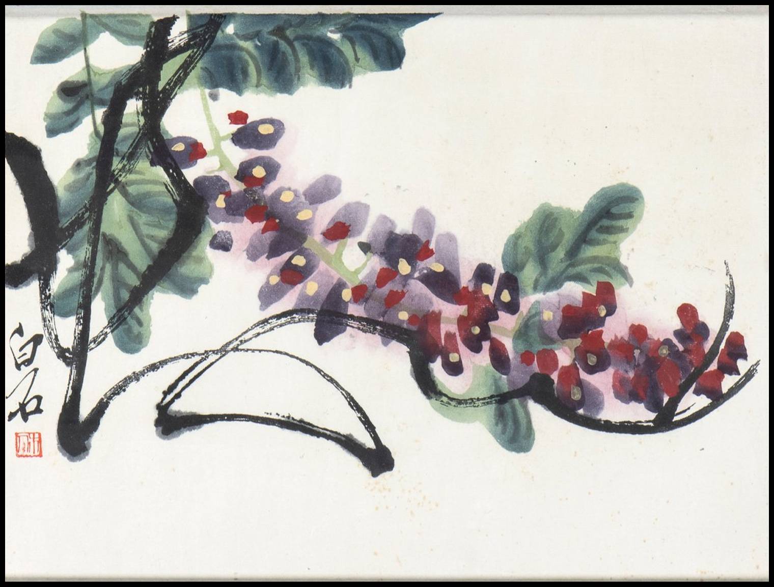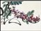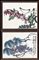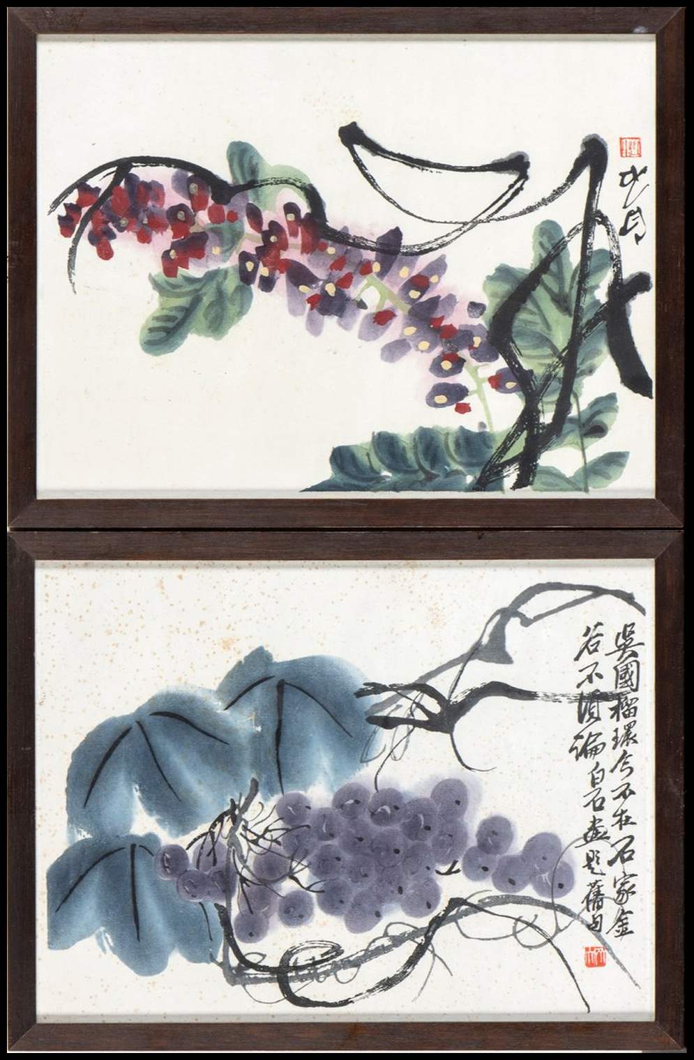 Due stampe policrome con soggetti vegetali, cornice in legno e vetro protettivo.