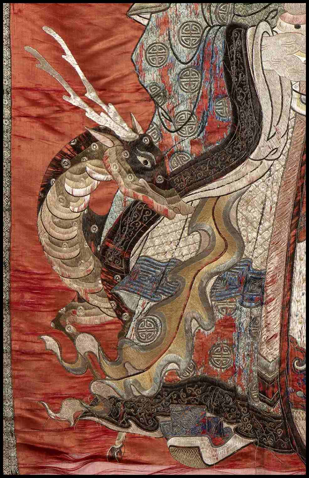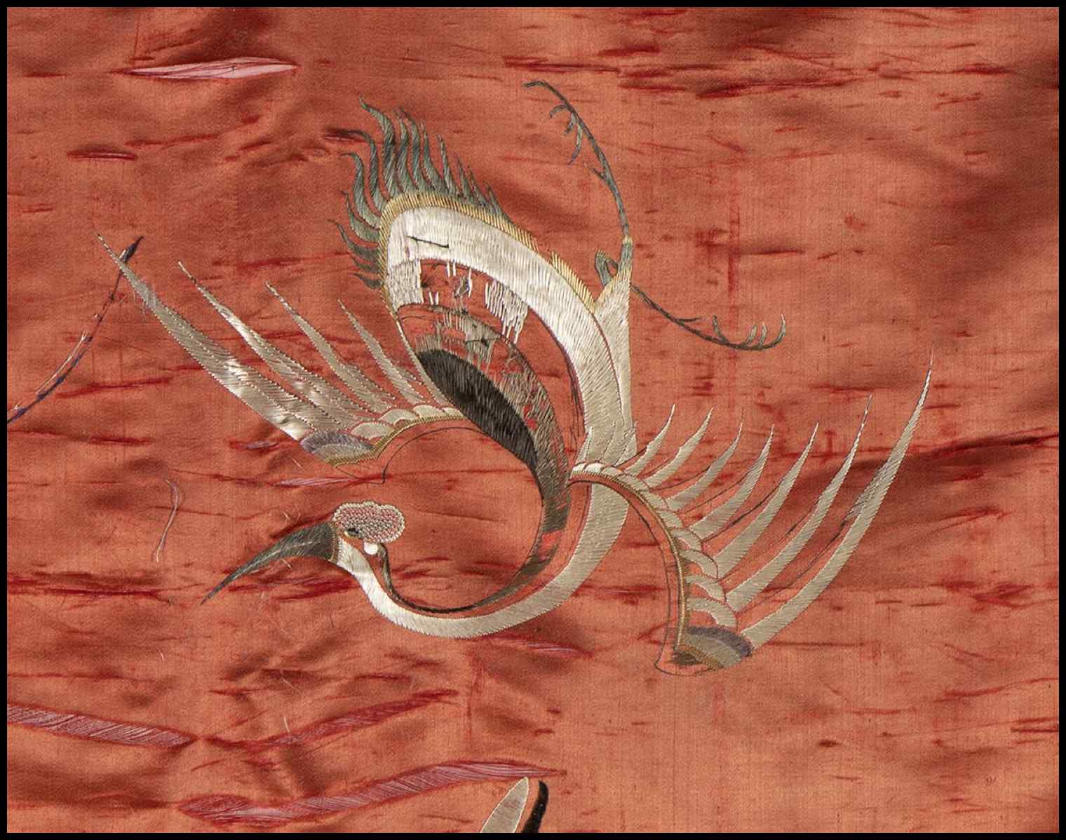 TESSUTO IN SETA CON DECORO A RICAMO DI FILI POLICROMI Cina, dinastia Qing, XIX secolo