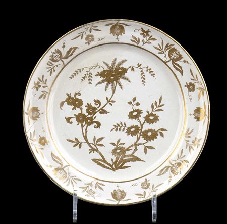 PIATTO IN MAIOLICA CON DECORO A ORO Milano, Manifattura Clerici, 1760-1770 circa