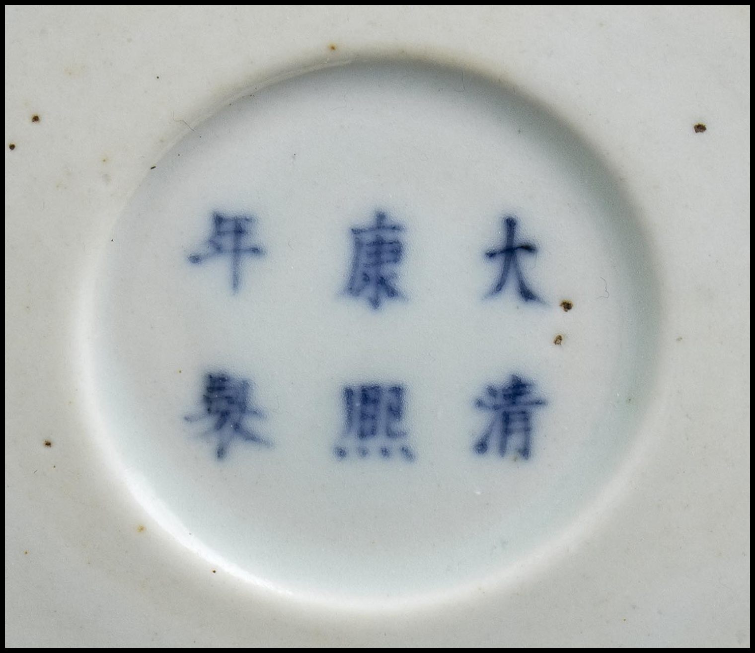 BACILE IN PORCELLANA 'BIANCO E BLU' Cina, marchio apocrifo di Kangxi