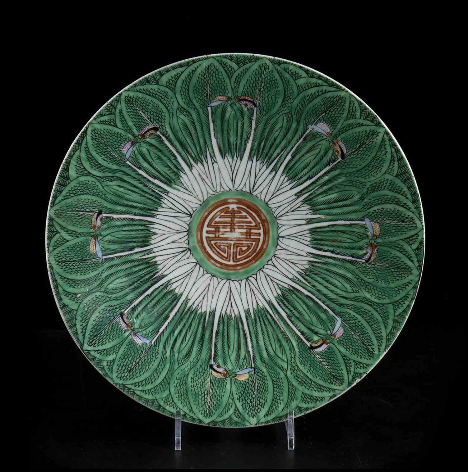PIATTO IN PORCELLANA CON DECORO A SMALTI POLICROMI Cina, XX secolo