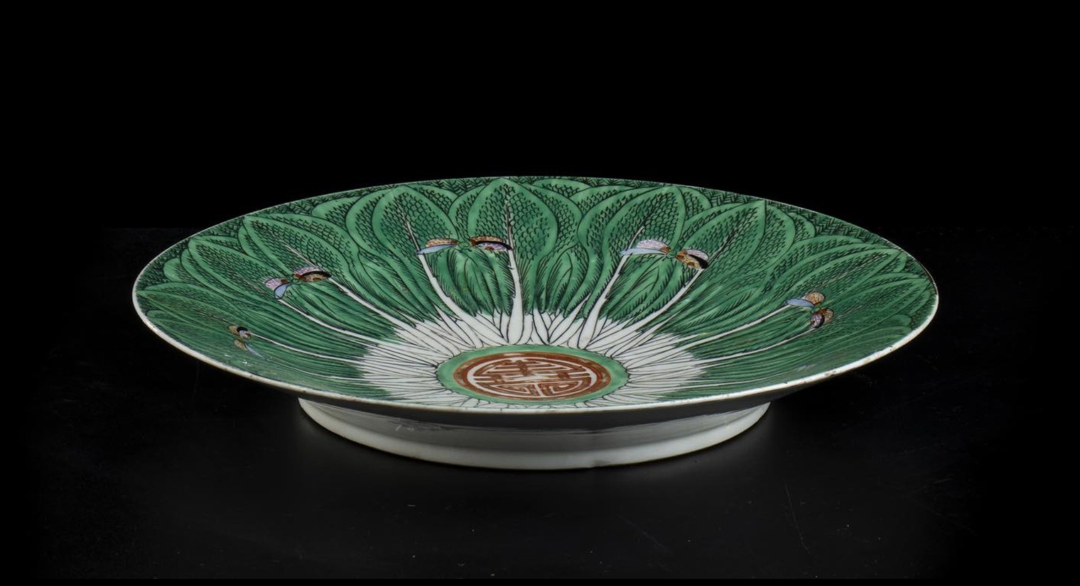 PIATTO IN PORCELLANA CON DECORO A SMALTI POLICROMI