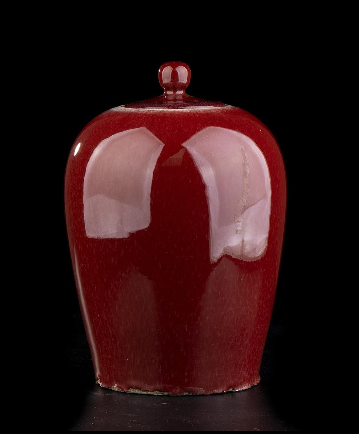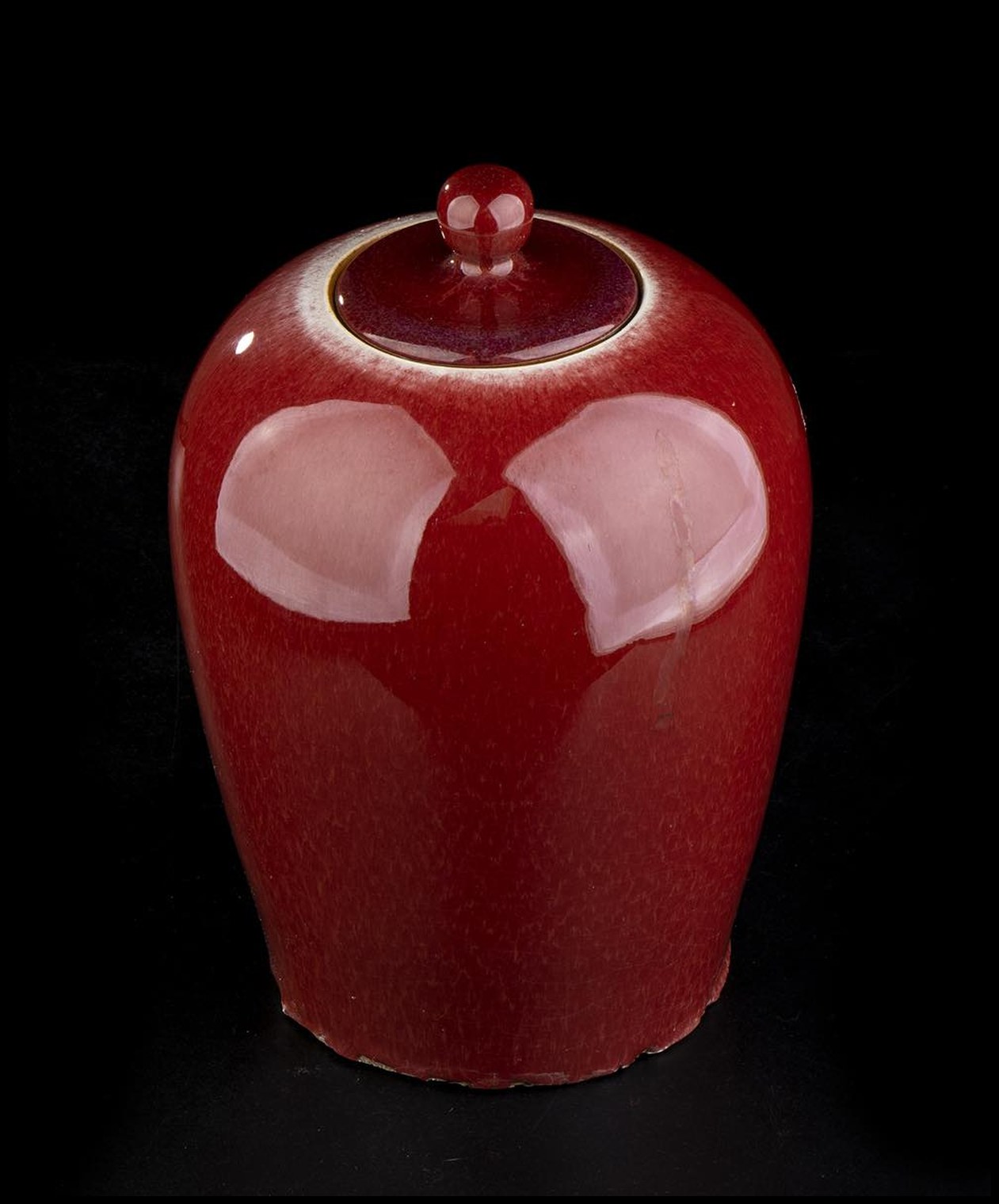 GIARA CON COPERCHIO IN PORCELLANA CON INVETRIATURA 'SANGUE DI BUE' Cina, dinastia Qing, metà del XIX secolo