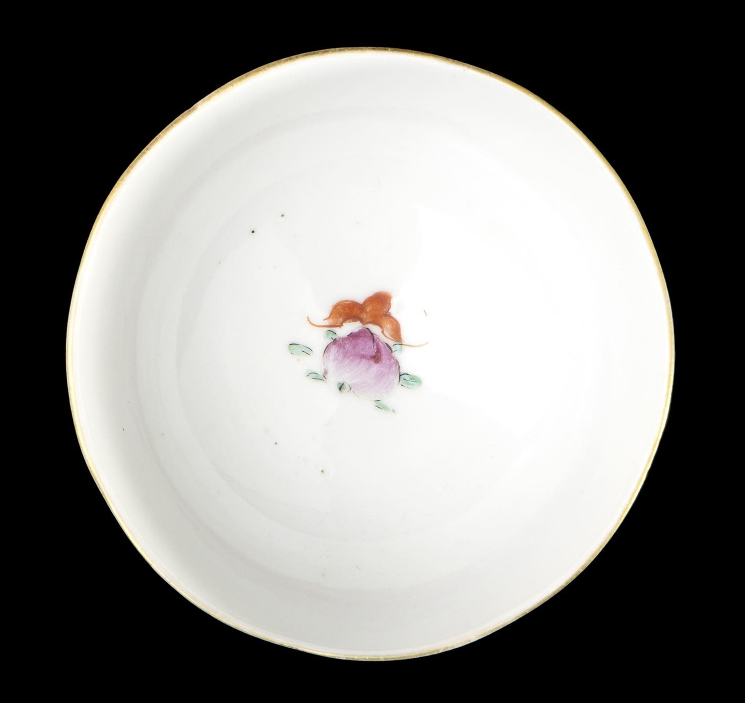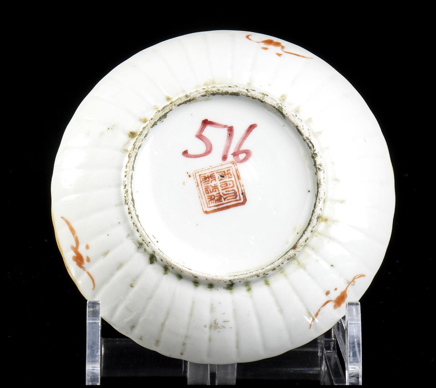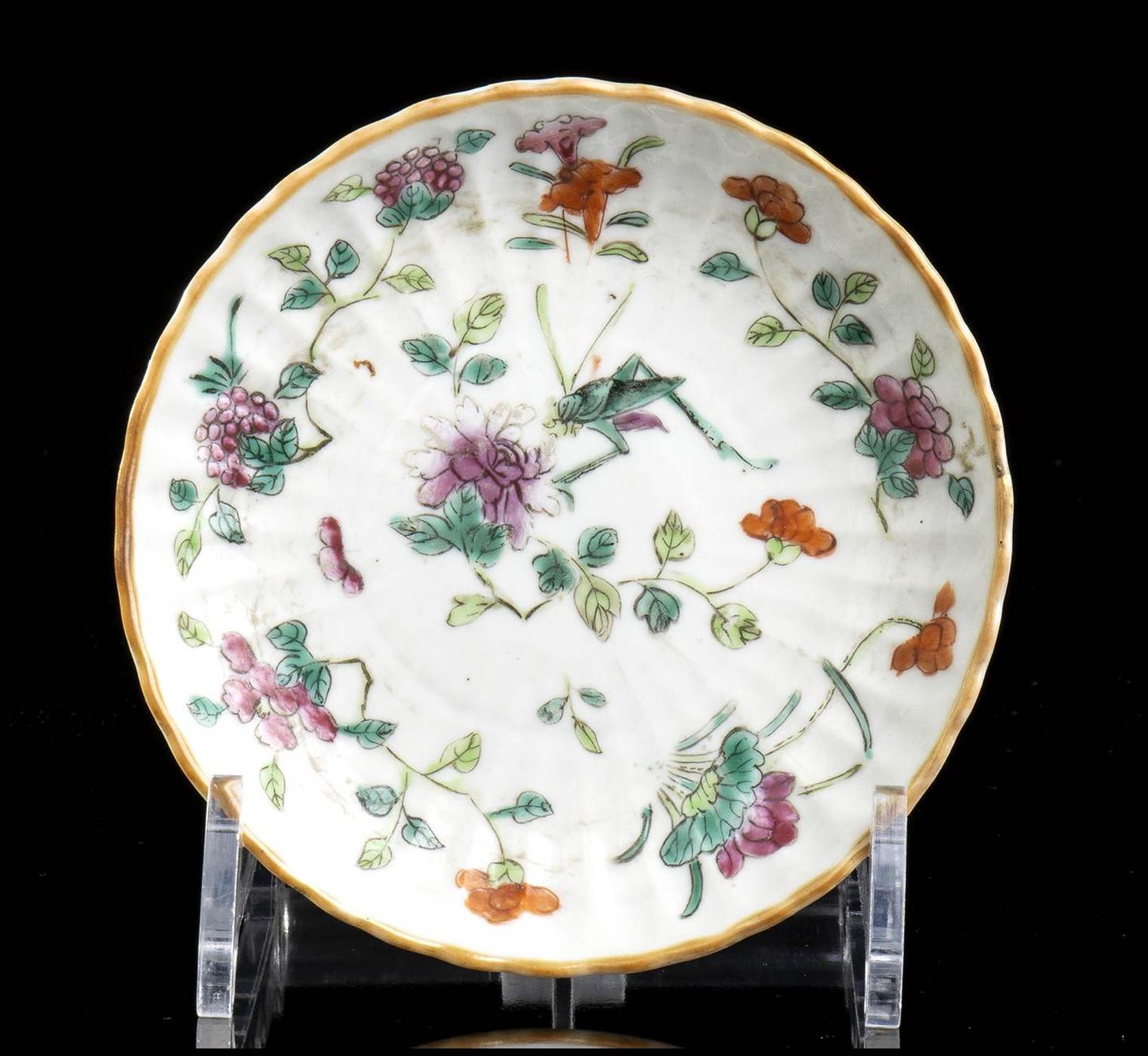 TAZZINA E PIATTINO IN PORCELLANA CON DECORO A SMALTI POLICROMI Cina, XX secolo
