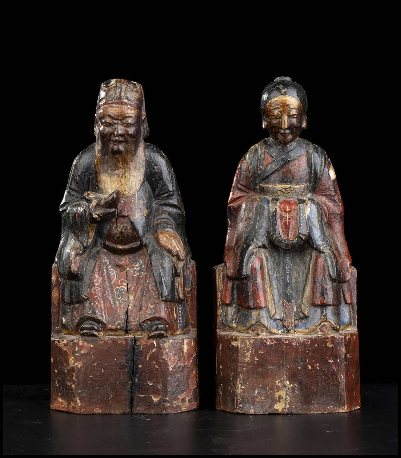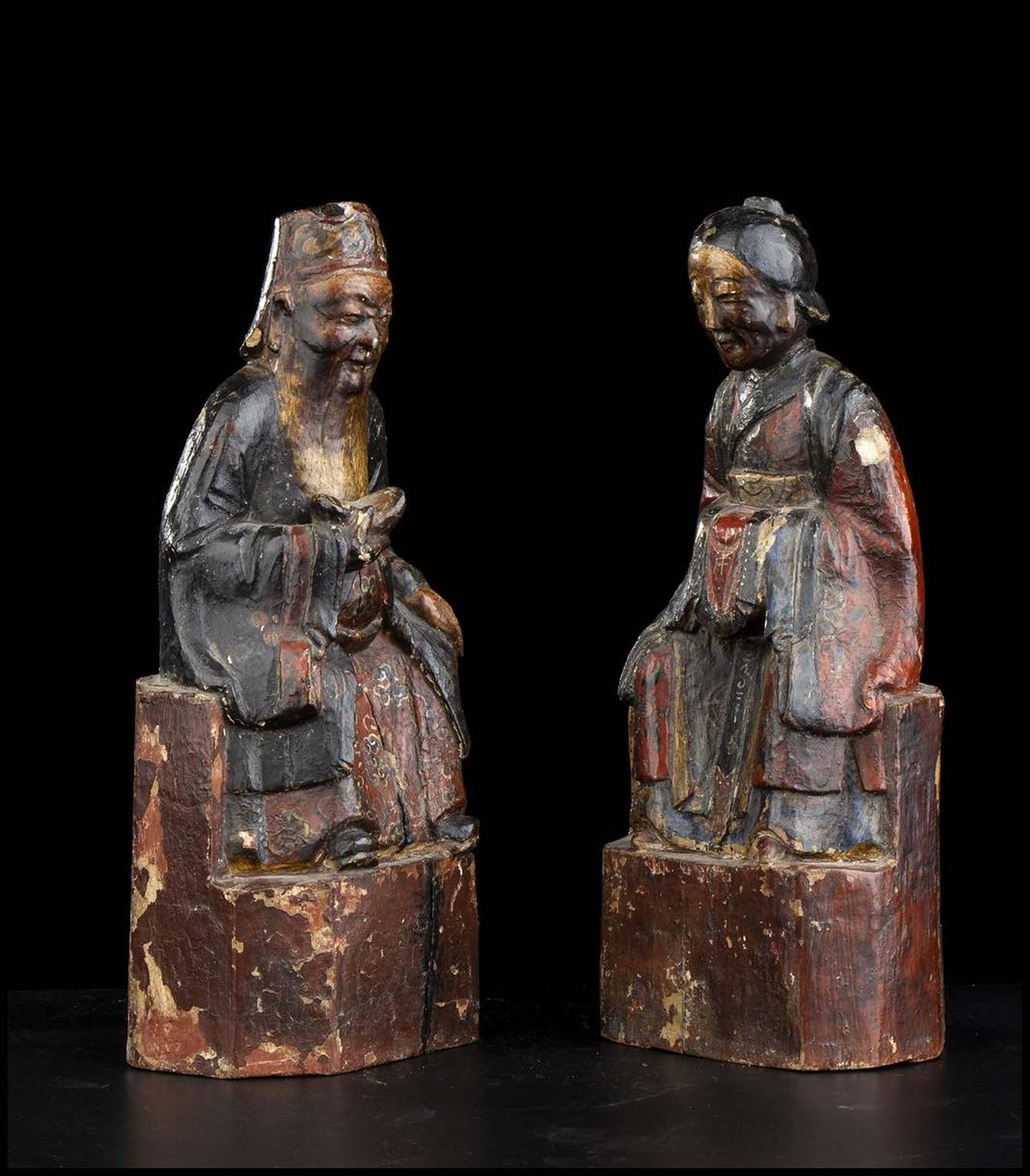 DUE FIGURE IN LEGNO LACCATO Cina, XIX-XX secolo