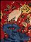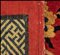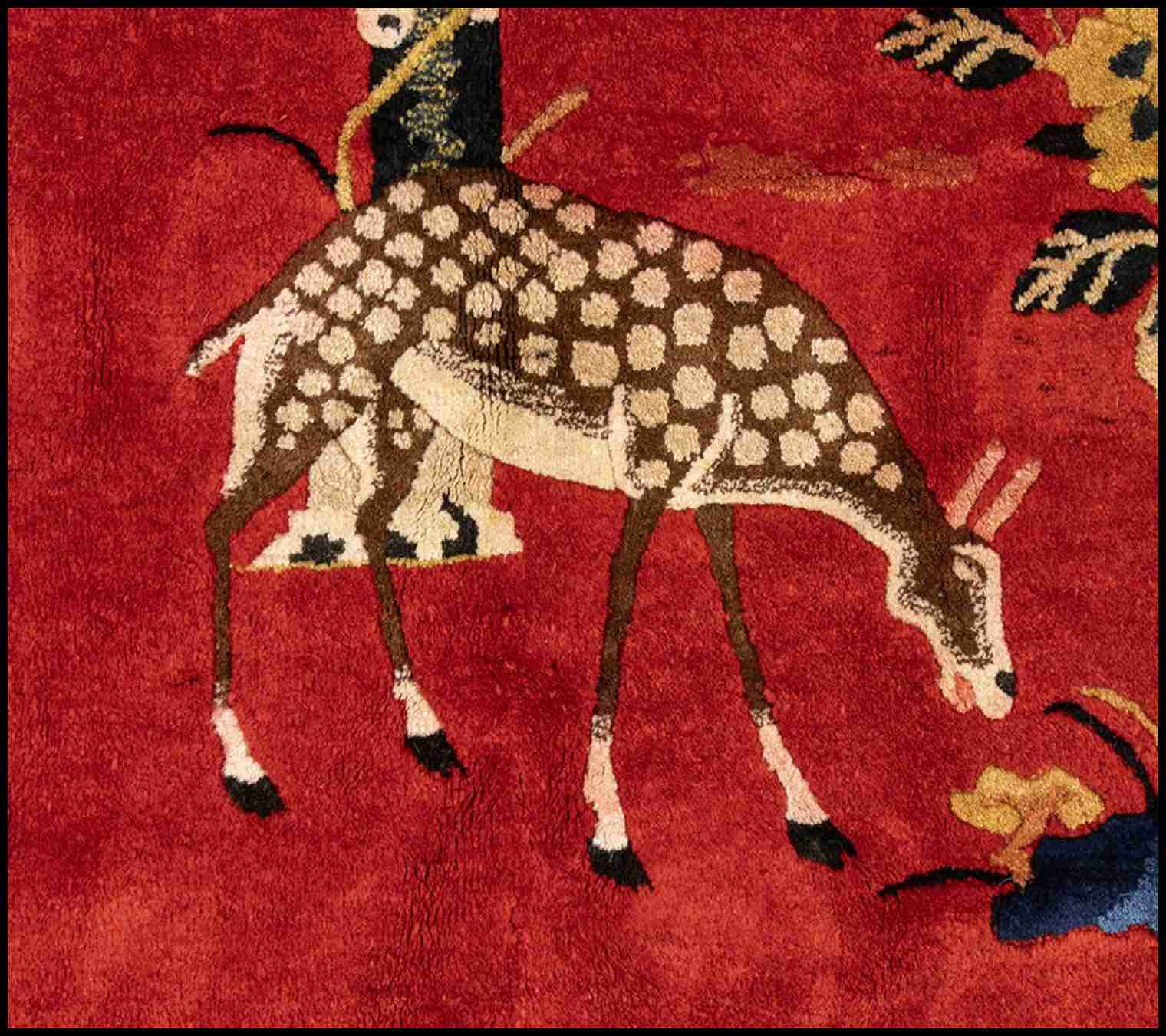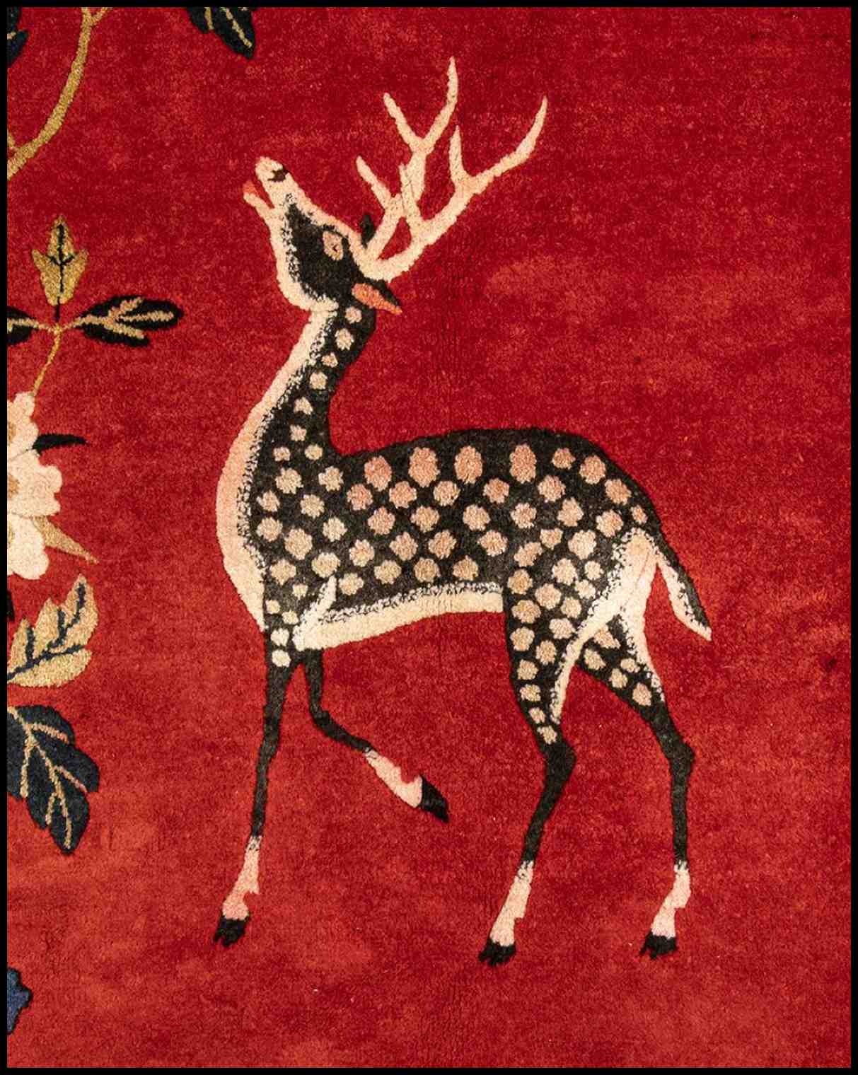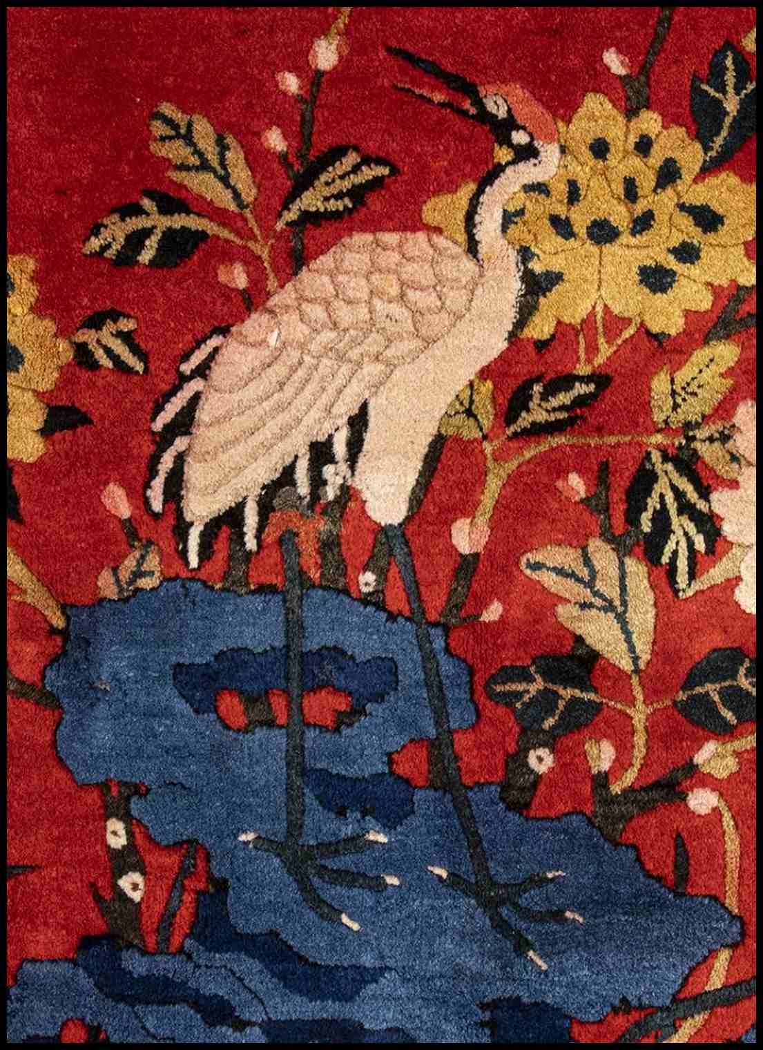 INUSUALE E RAFFINATO TAPPETO A FONDO ROSSO Cina, XX secolo