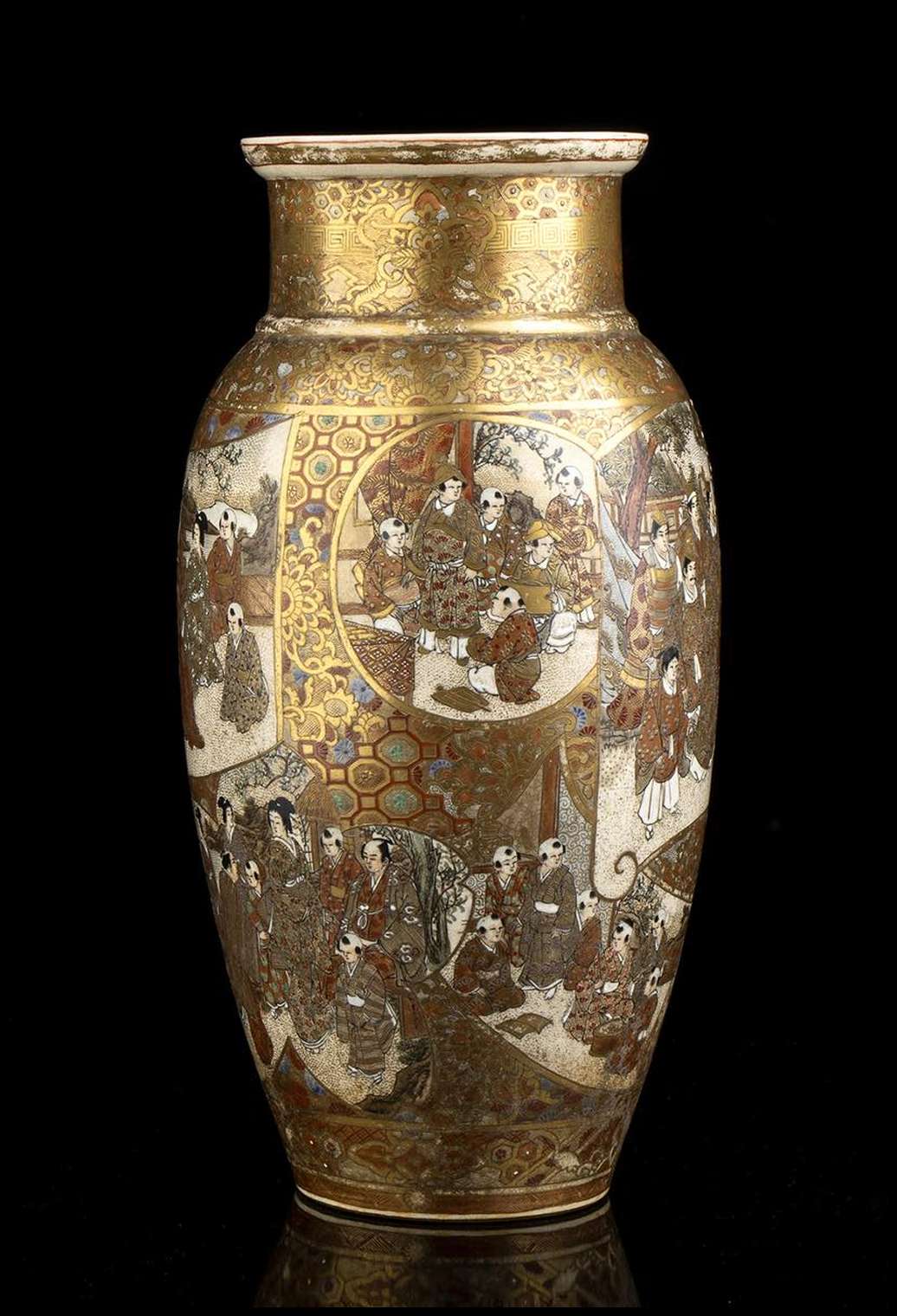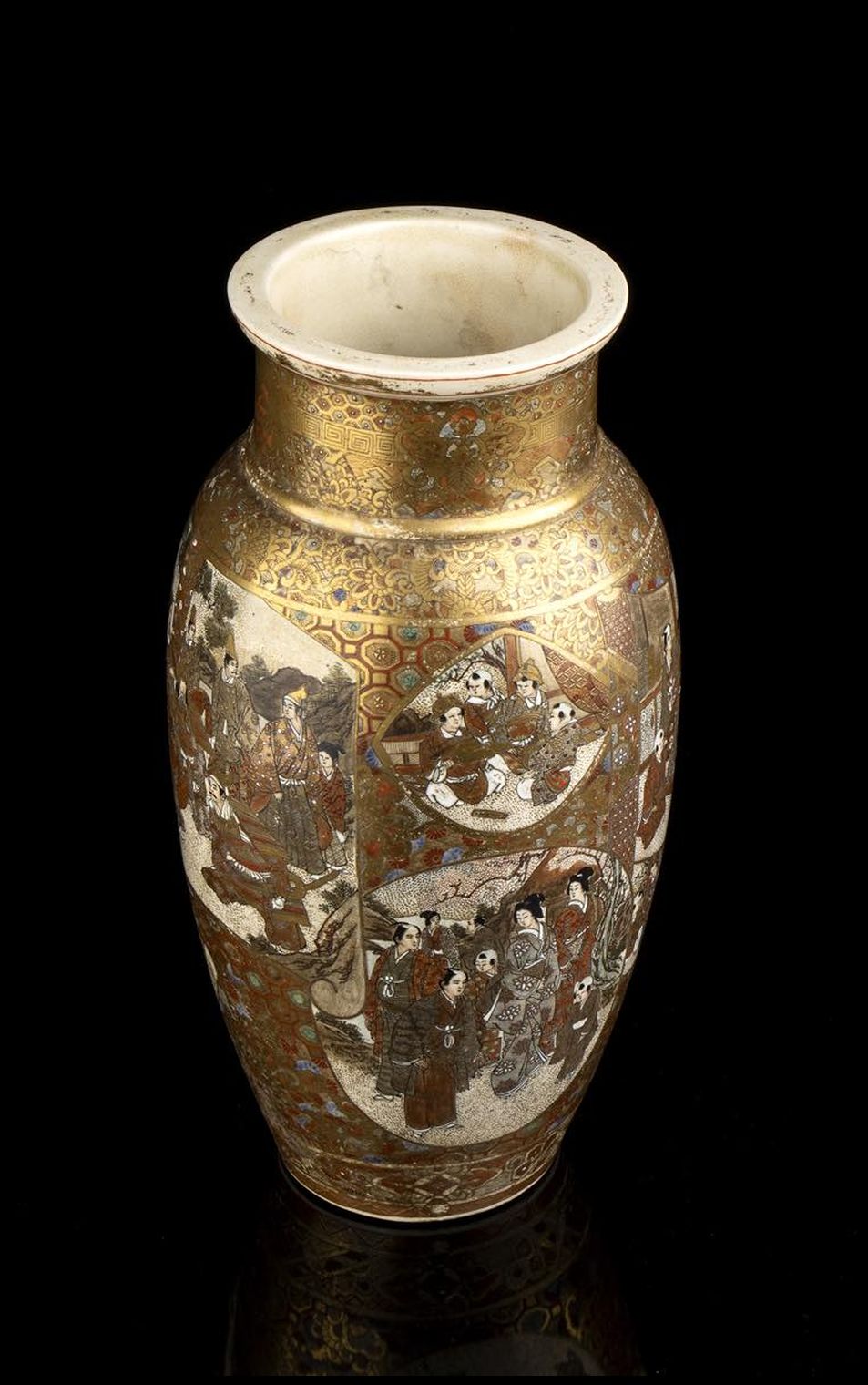 VASO A BALAUSTRO IN CERAMICA 'SATSUMA' CON DECORO A SMALTI POLICROMI E ORO Giappone, periodo Meiji