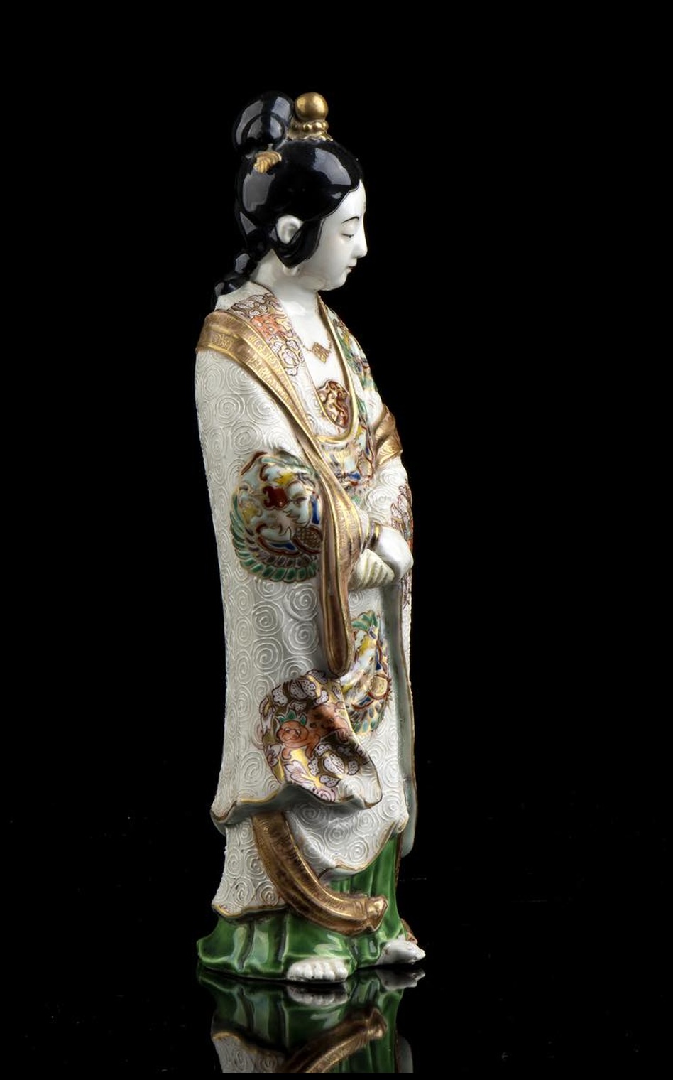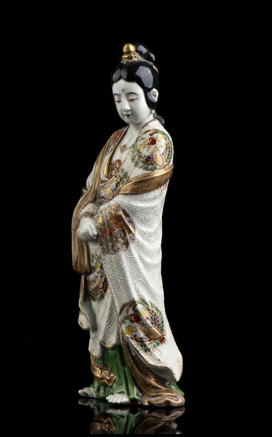 FIGURA DI KANNON IN CERAMICA 'SATSUMA' CON DECORO A SMALTI POLICROMI E ORO Giappone, periodo Meiji