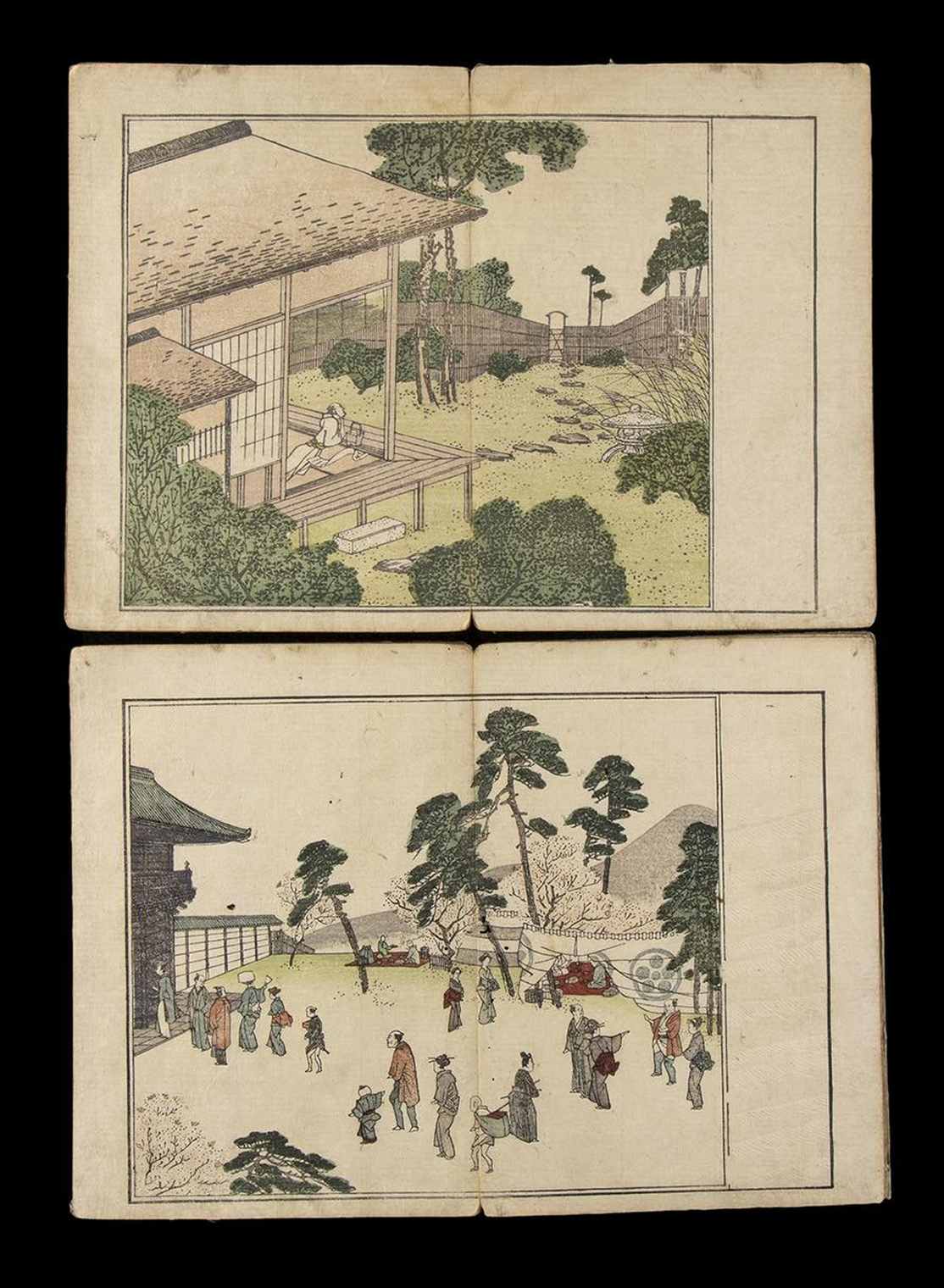 DUE VOLUMI CON SCENE DI PAESAGGIO, FIGURE E FIORI E UCCELLI Giappone, periodo Meiji