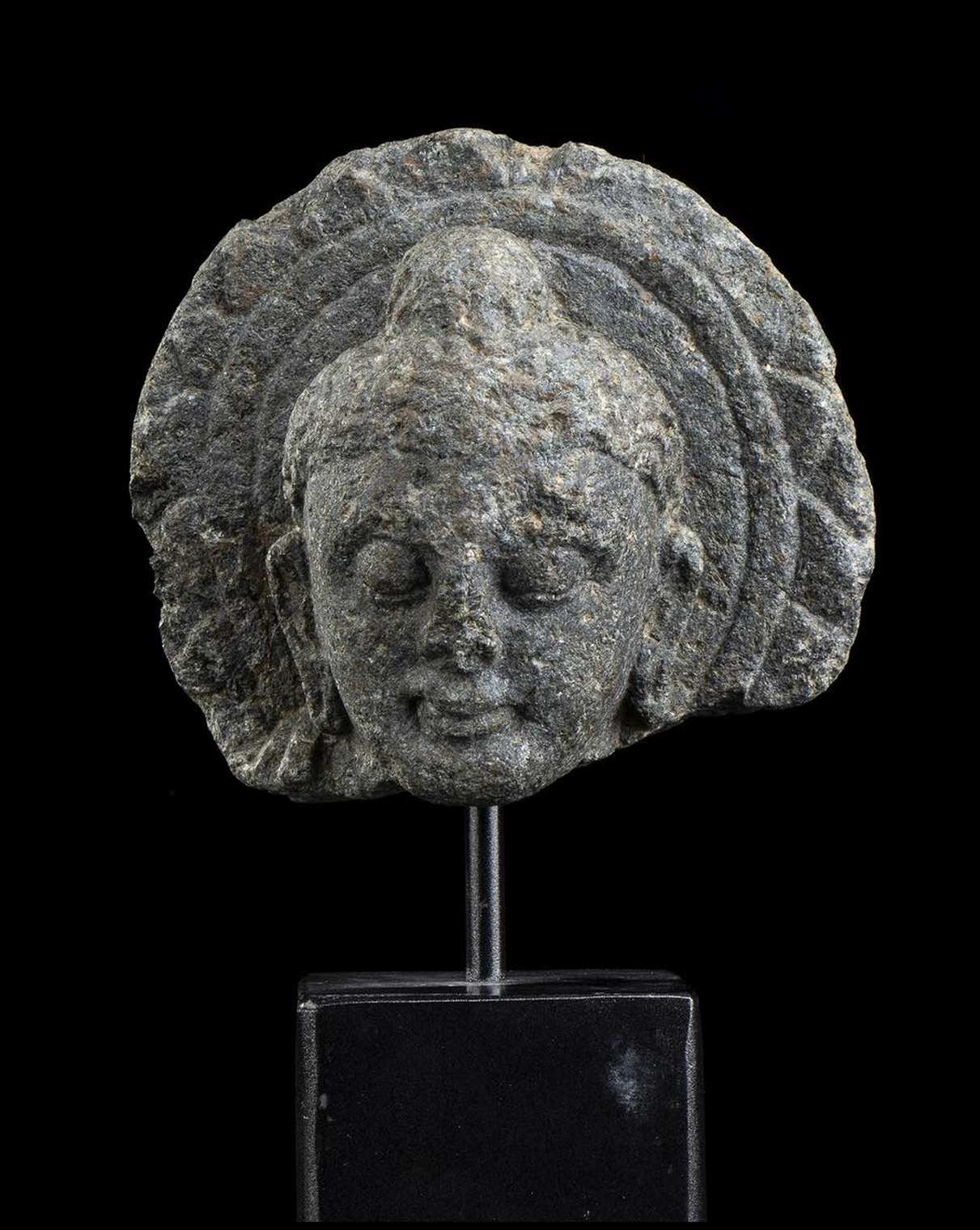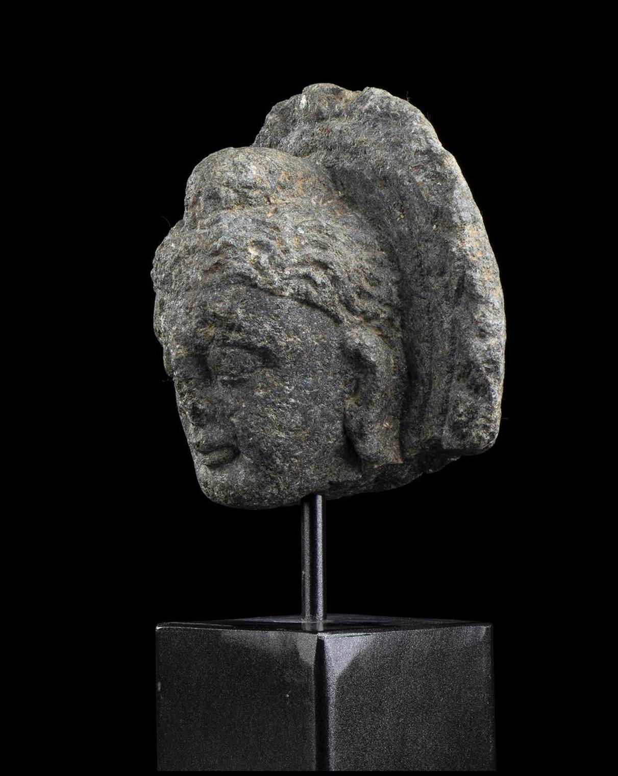 TESTA DI BUDDHA IN PIETRA stile Gandhara