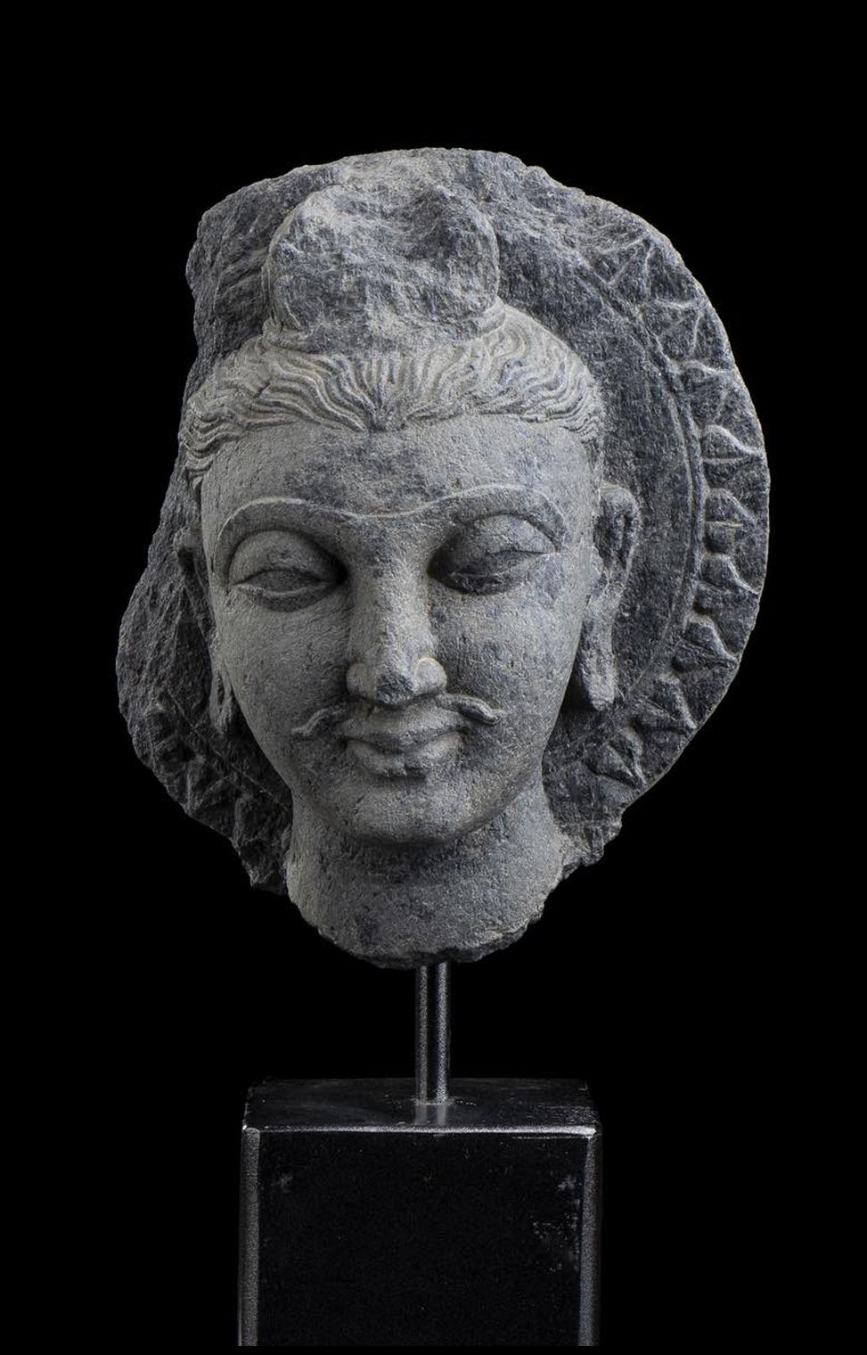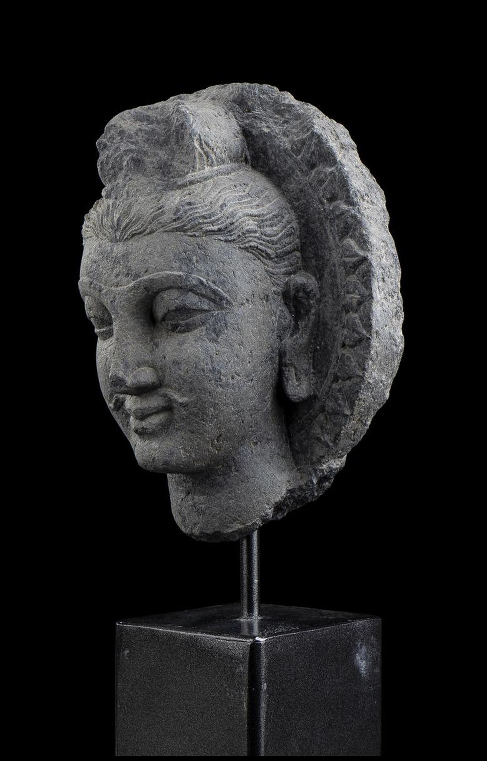 TESTA DI BUDDHA IN PIETRA stile Gandhara
