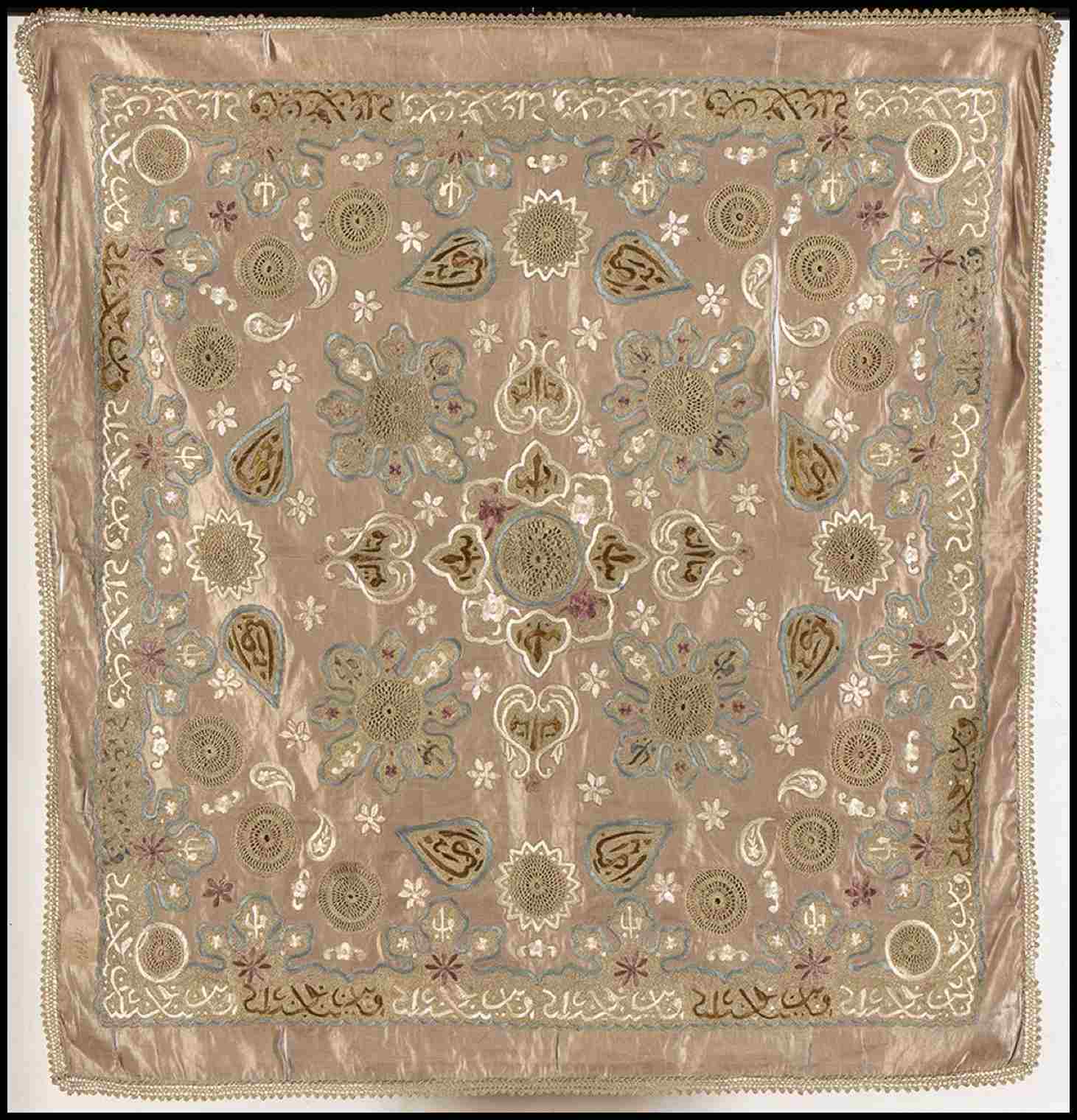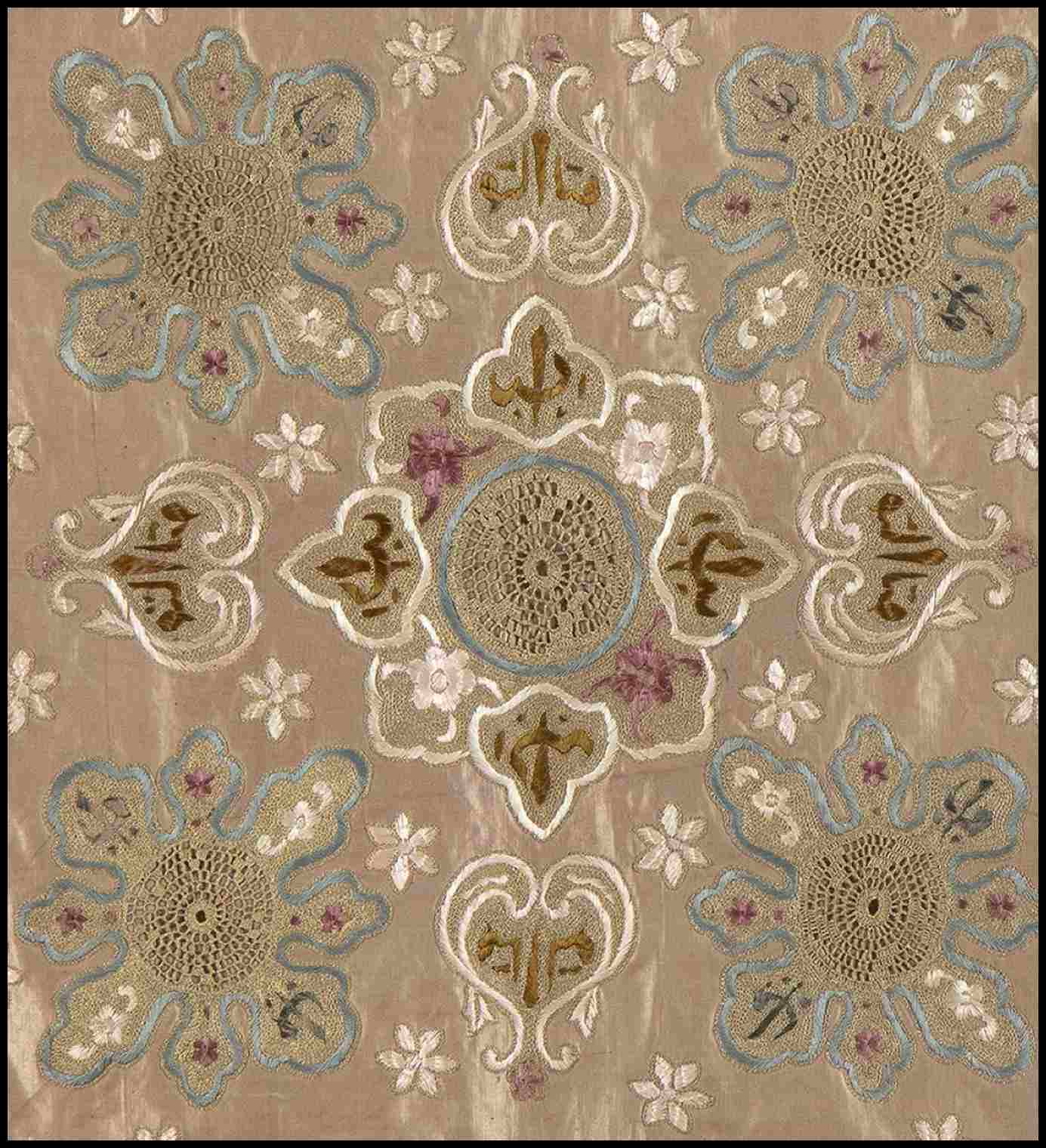 TESSUTO IN SETA CON DECORO A RICAMO DI FILI POLICROMI Impero Ottomano, XIX secolo