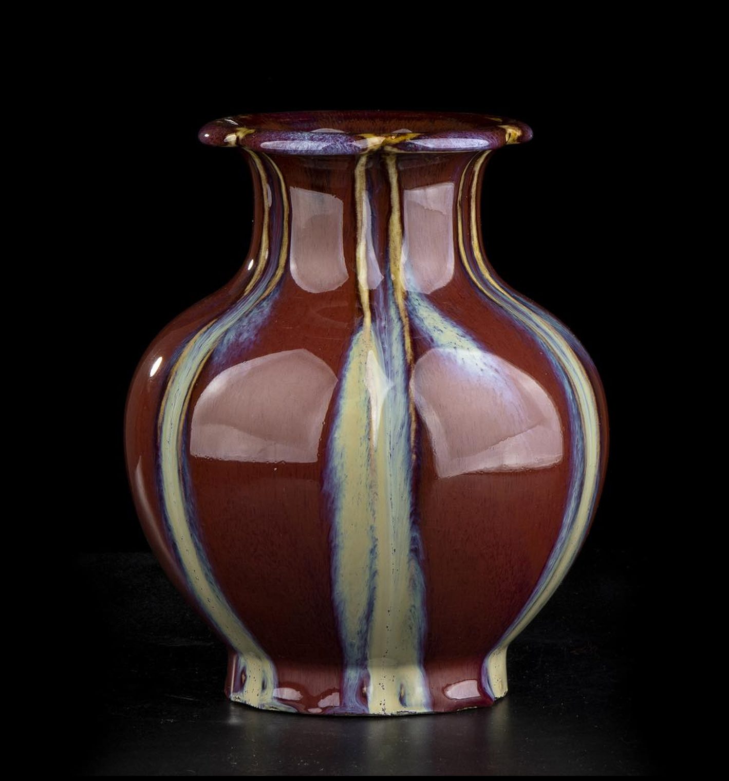 VASO IN PORCELLANA CON INVETRIATURA FLAMBÉ Cina, XX secolo