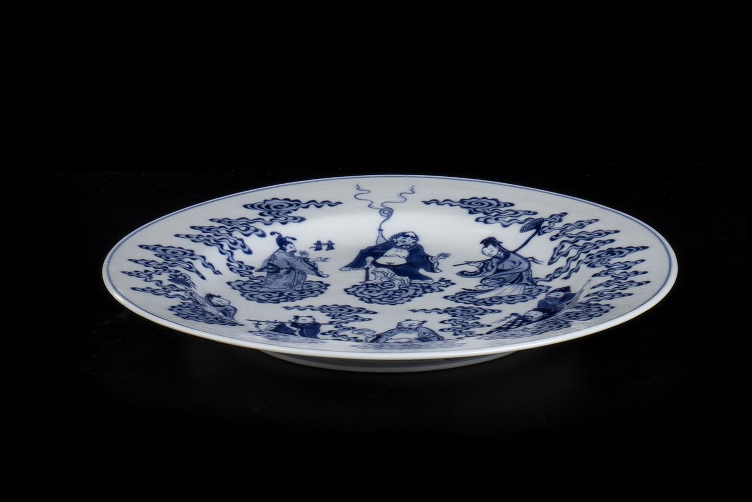 PIATTO IN PORCELLANA 'BIANCO E BLU' CON GLI OTTO IMMORTALI TAOISTI