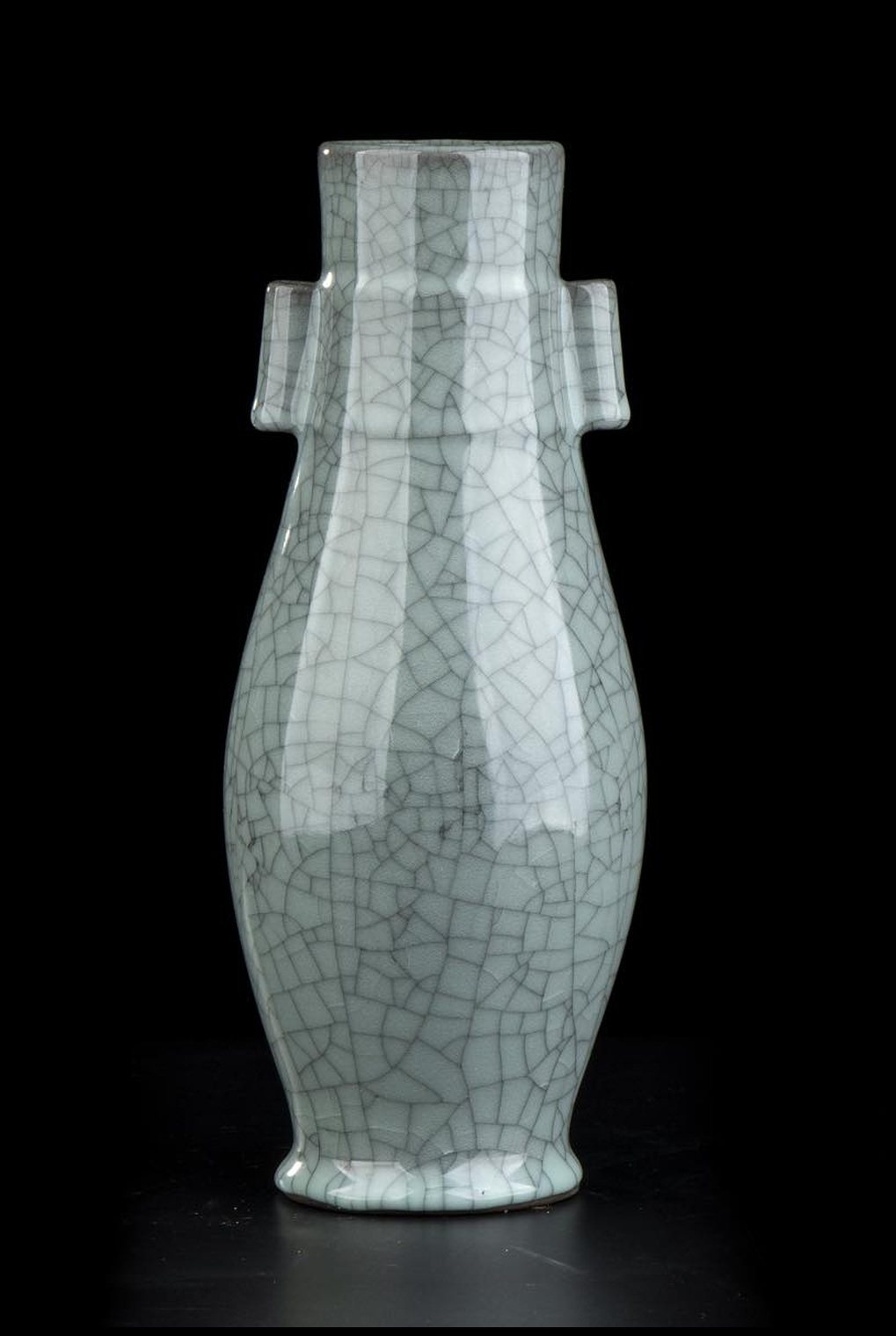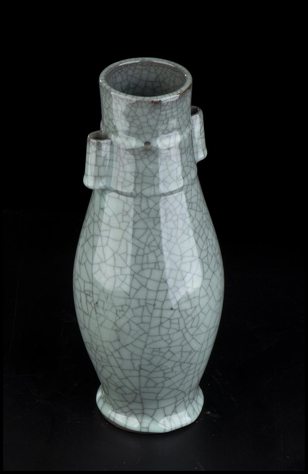 VASO A BALAUSTRO IN PORCELLANA CON INVETRIATURA VERDE CRAQUELÉ Cina, XX secolo