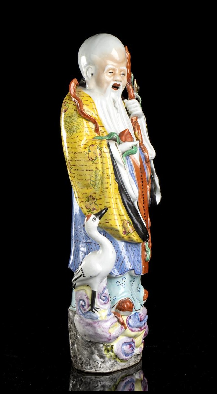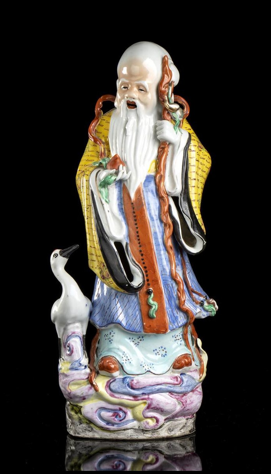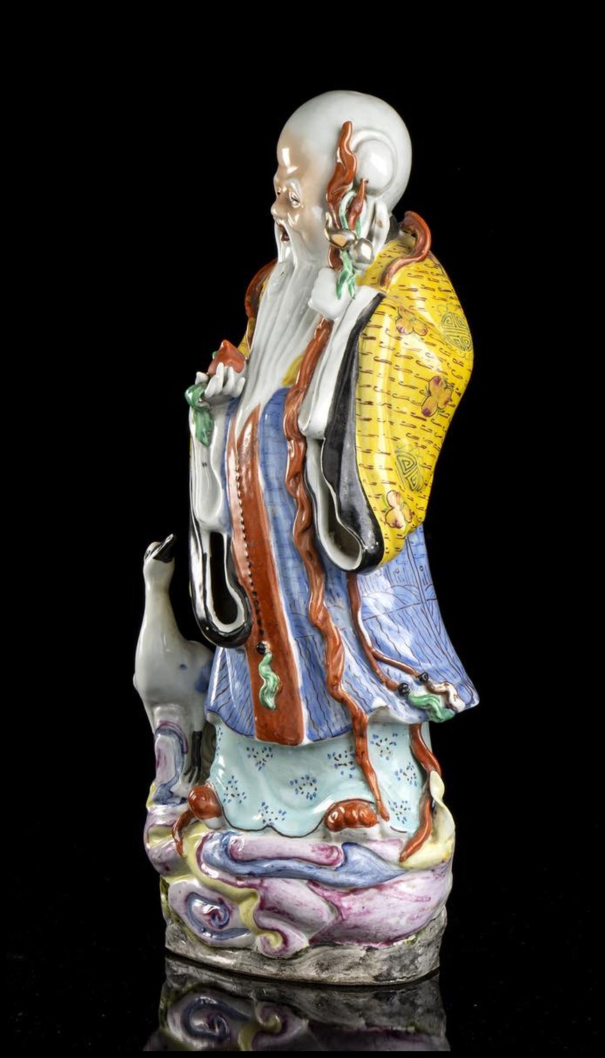 SHOULAO IN PORCELLANA CON DECORO A SMALTI POLICROMI Cina, XX secolo