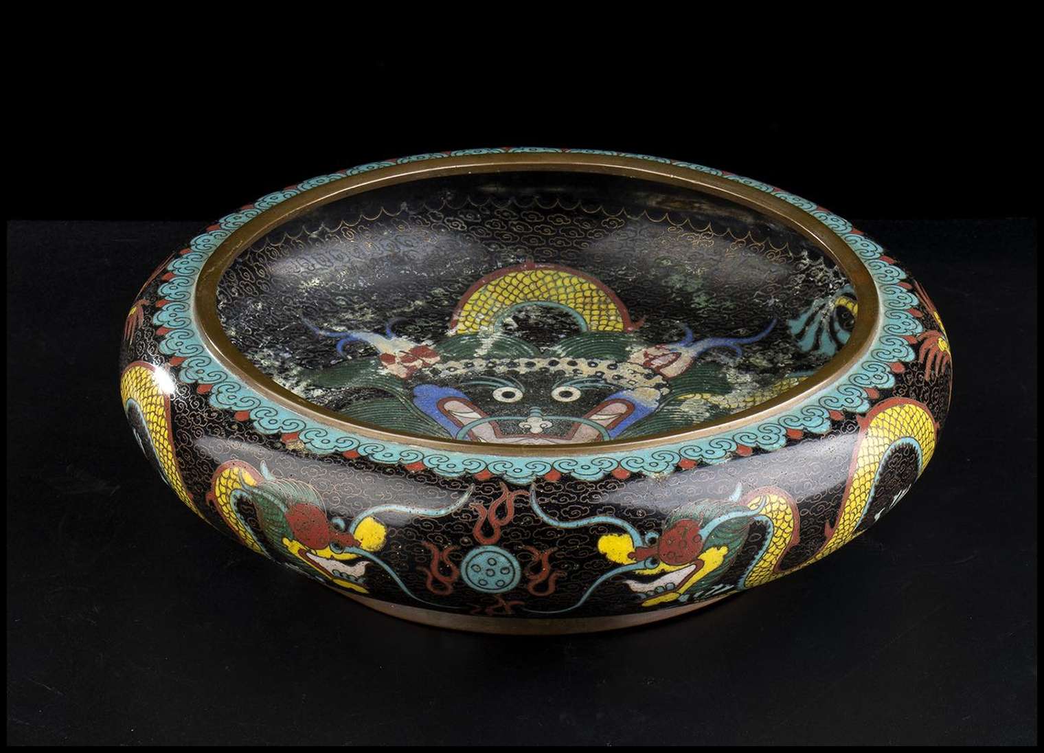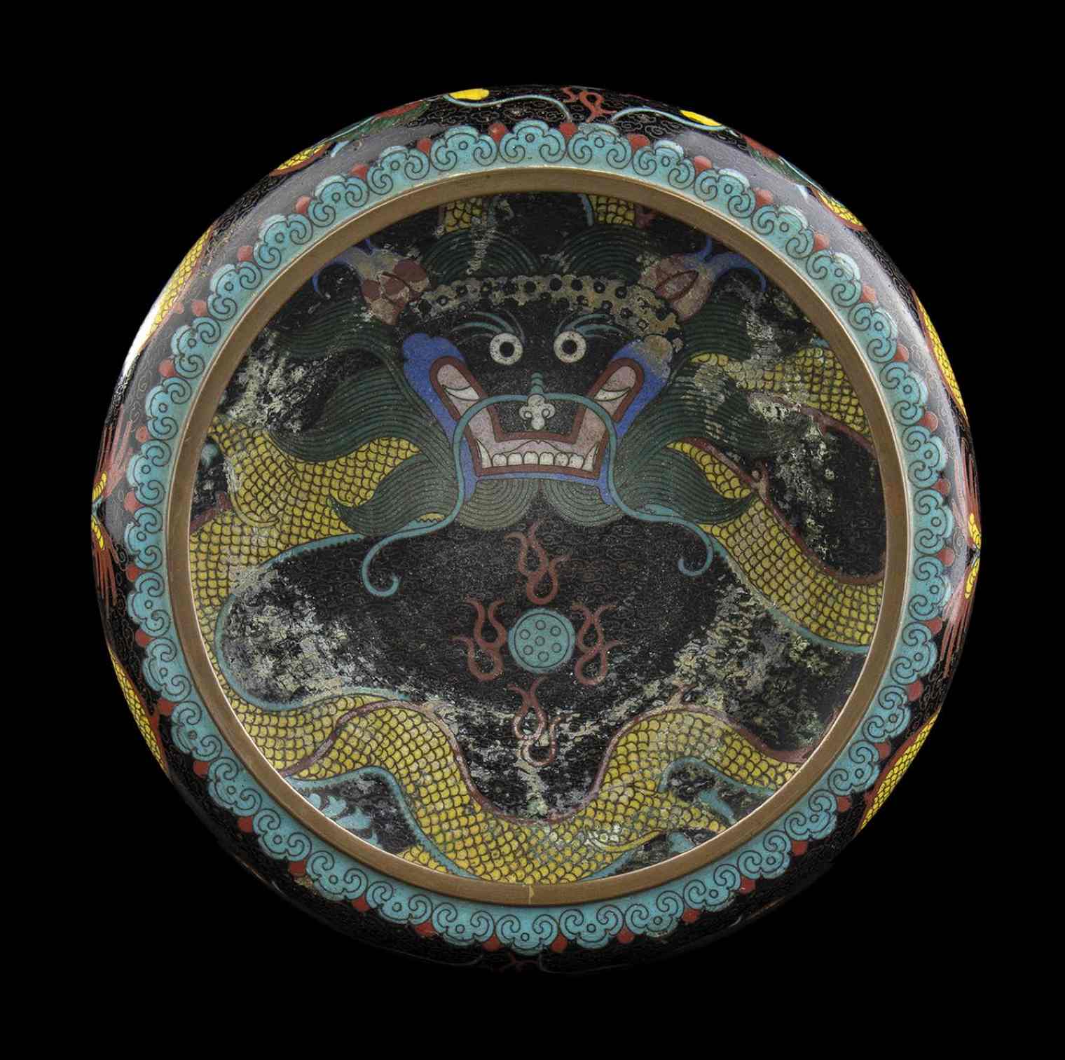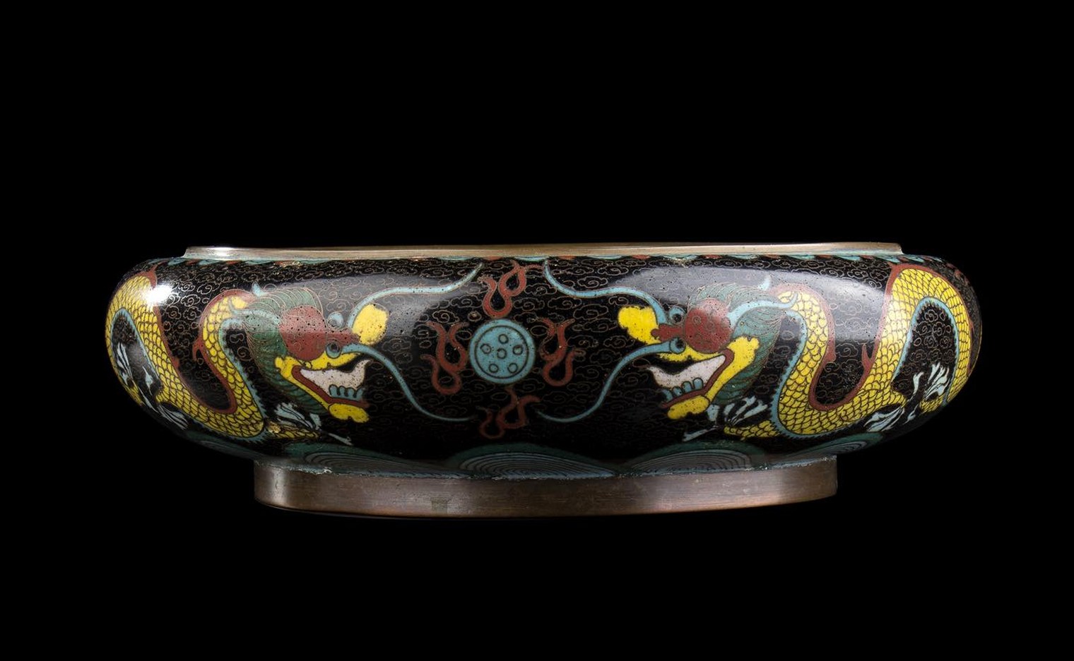 CIOTOLA IN METALLO CON DECORO A SMALTI CLOISONNÉ Cina, XX secolo