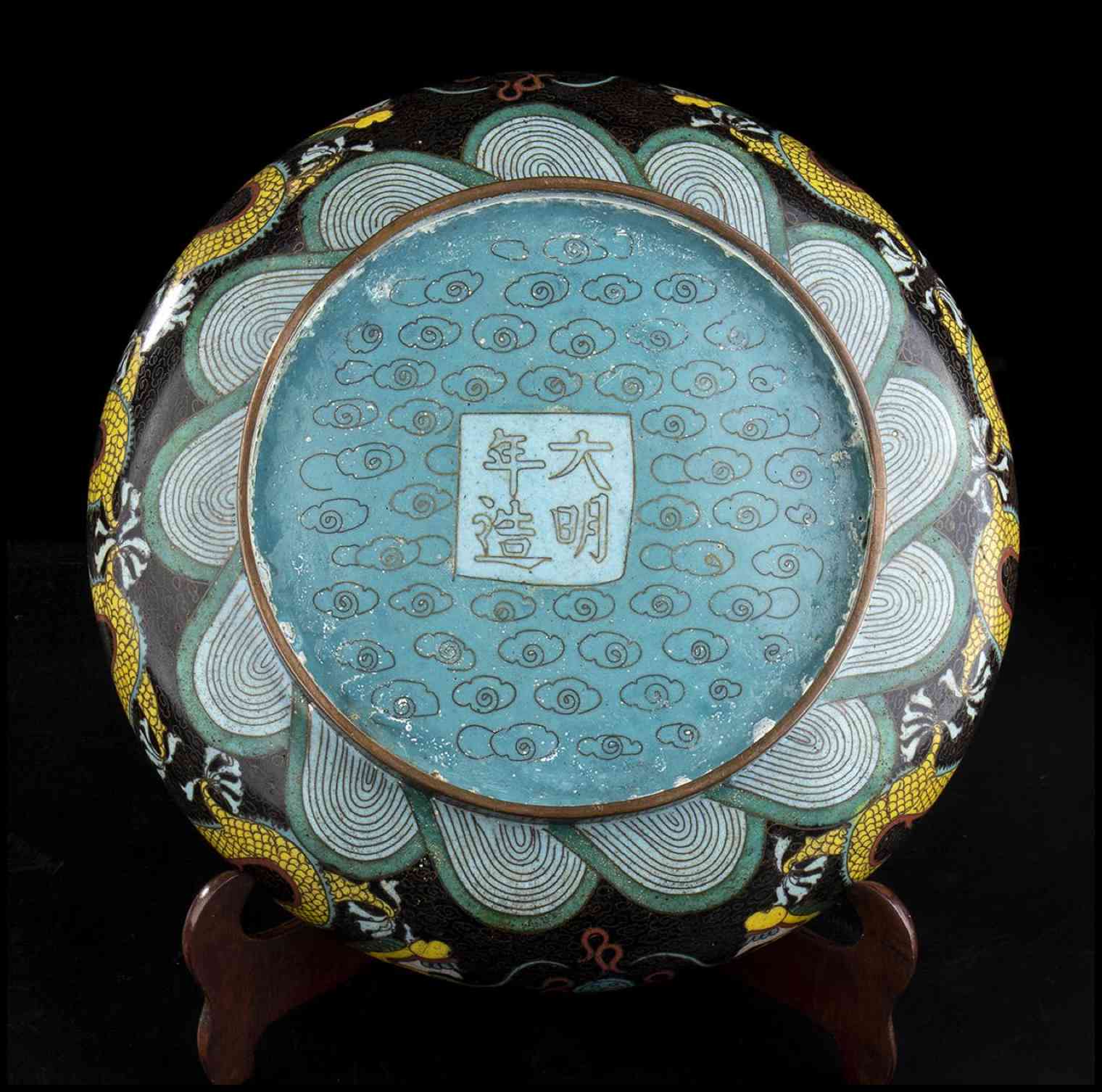 CIOTOLA IN METALLO CON DECORO A SMALTI CLOISONNÉ