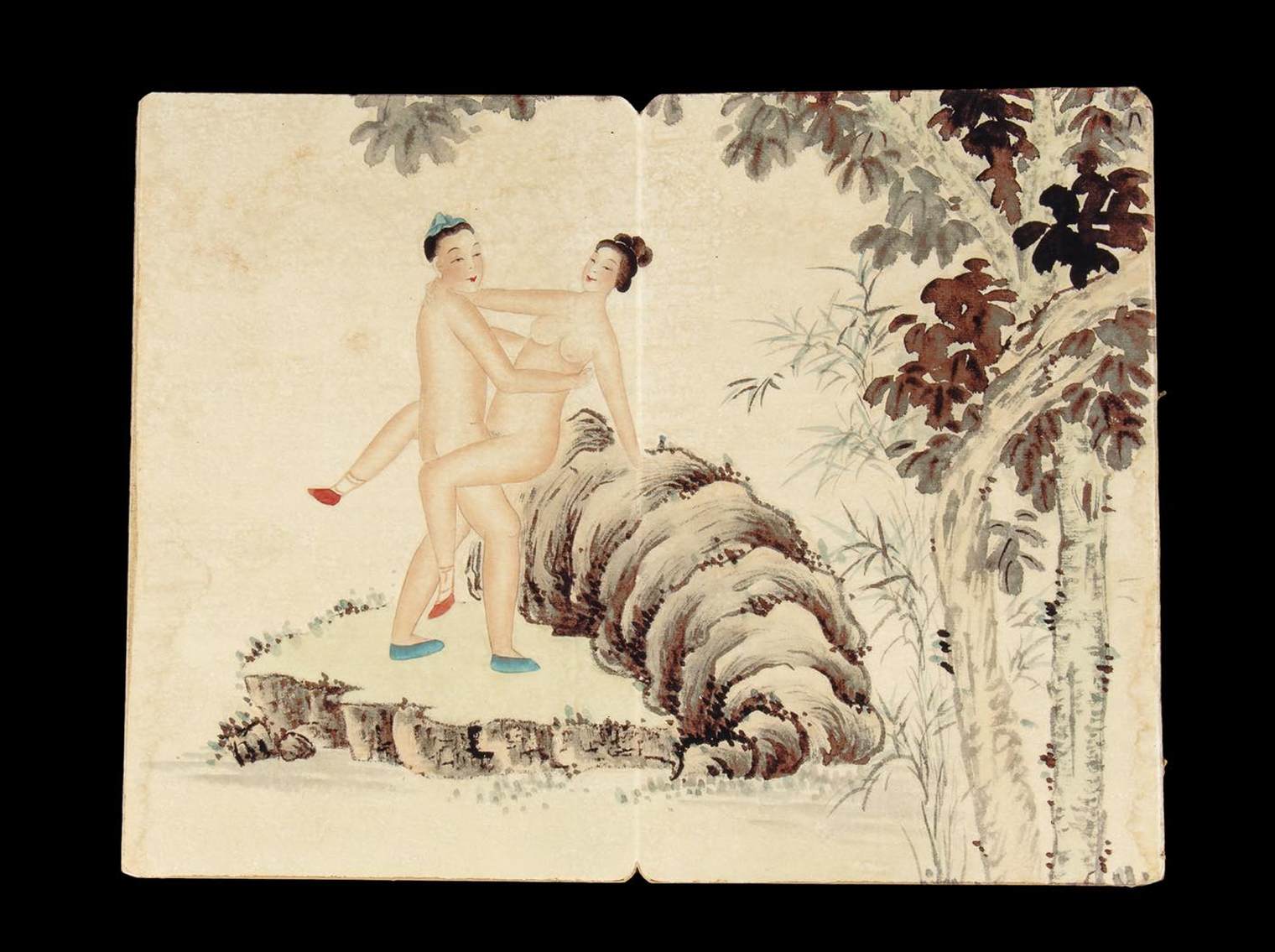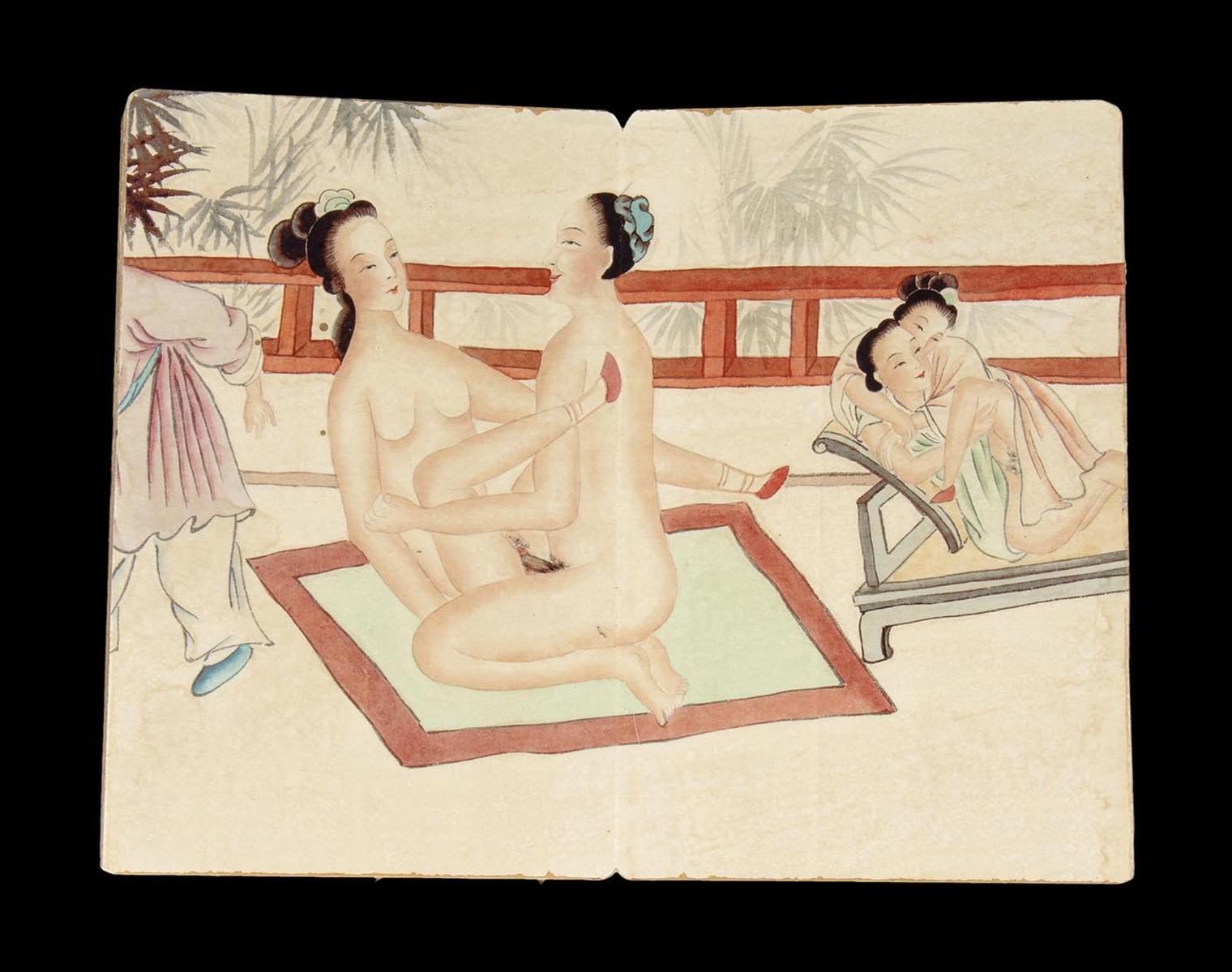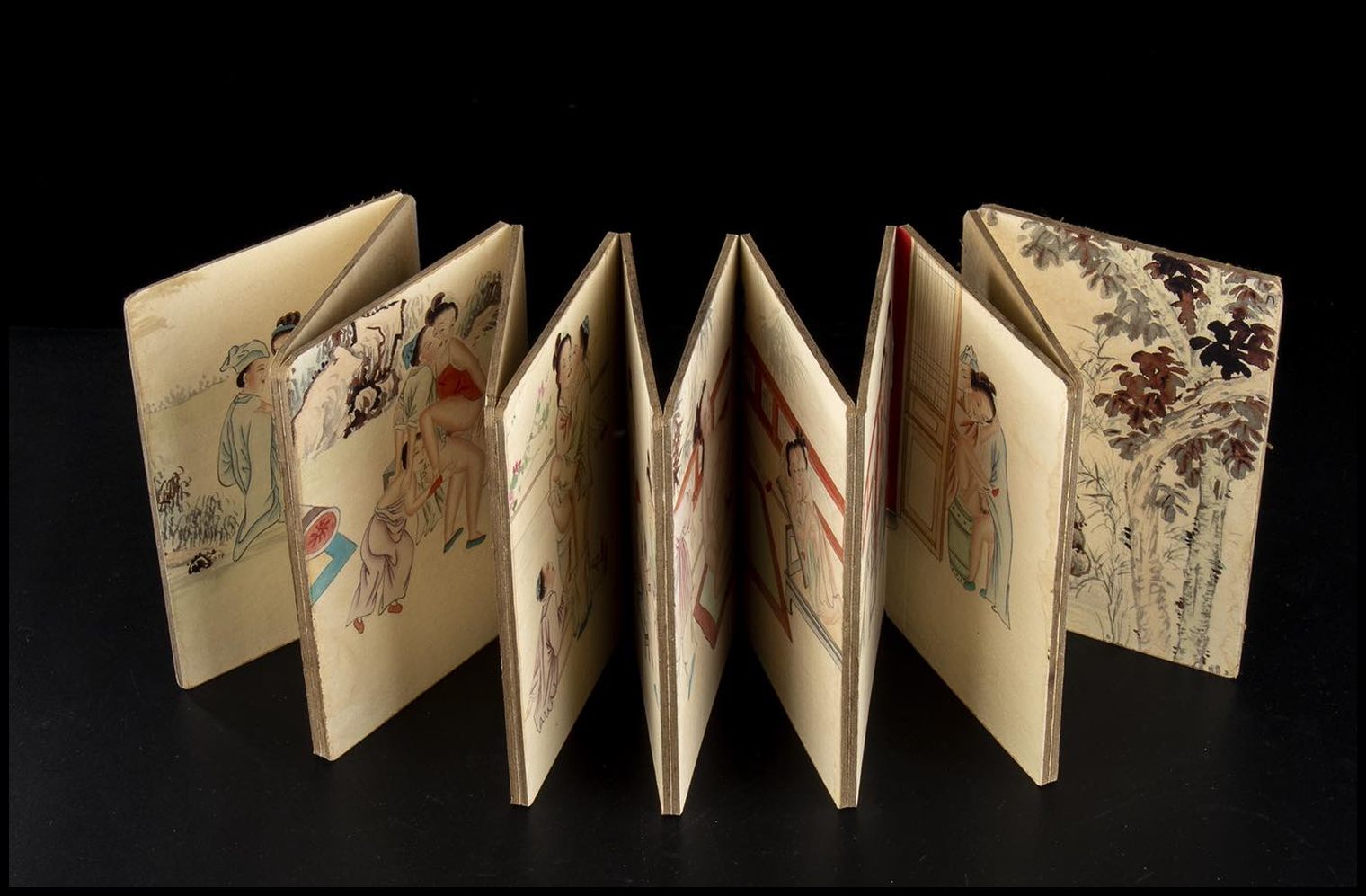 LIBRO CON IMMAGINI EROTICHE DIPINTE A COLORI SU CARTA INCOLLATA SU CARTONE Cina, XX secolo