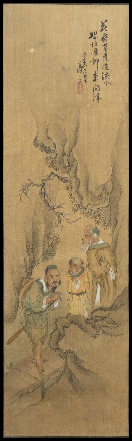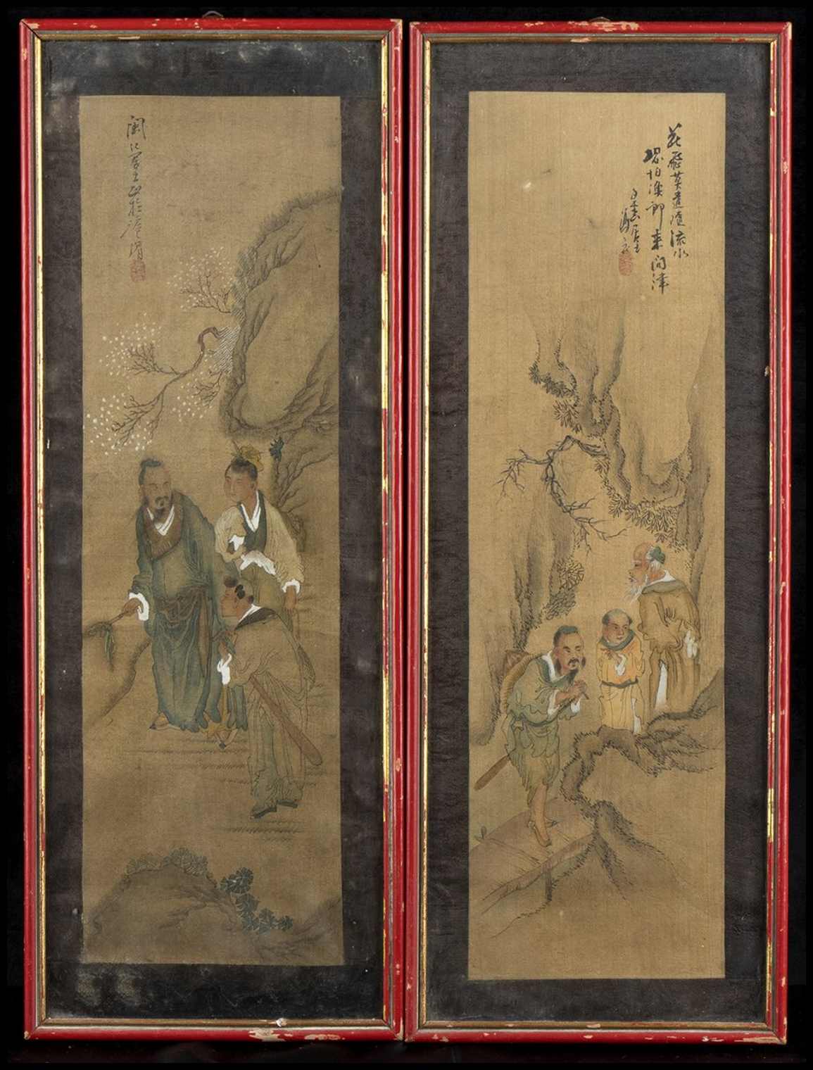 DUE DIPINTI CON FIGURE A INCHIOSTRO E COLORI SU SETA