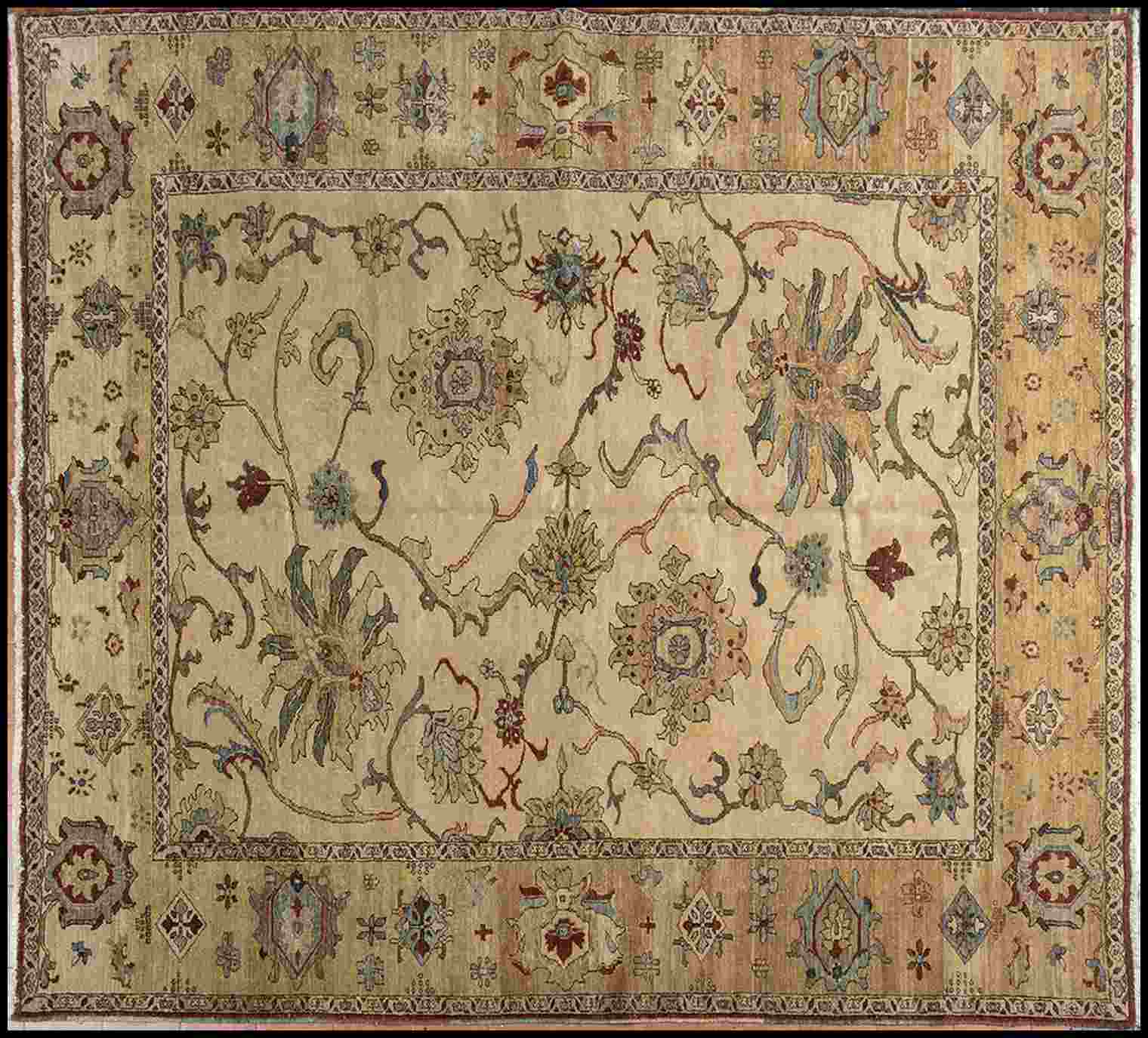 TAPPETO A FONDO TURCHESE CON FIORI E UCCELLI