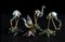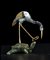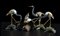 QUATTRO PICCOLE SCULTURE DI UCCELLI IN METALLO PARZIALMENTE DORATO E SMALTATO CON BASI IN PIETRA DURA E LEGNO