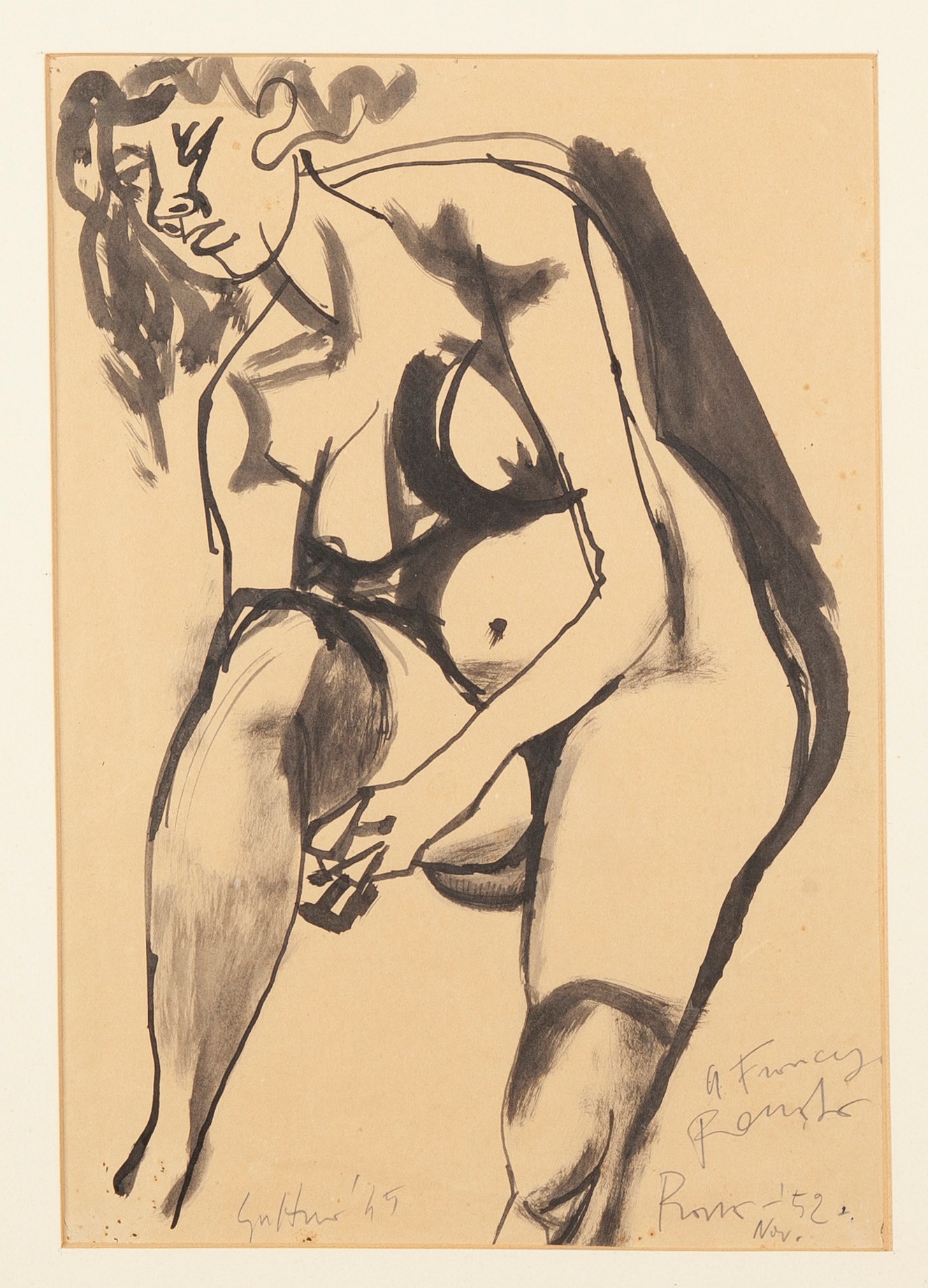 Renato Guttuso (Bagheria, 1911 - Roma, 1987) Le calze 1945 China su carta cm...