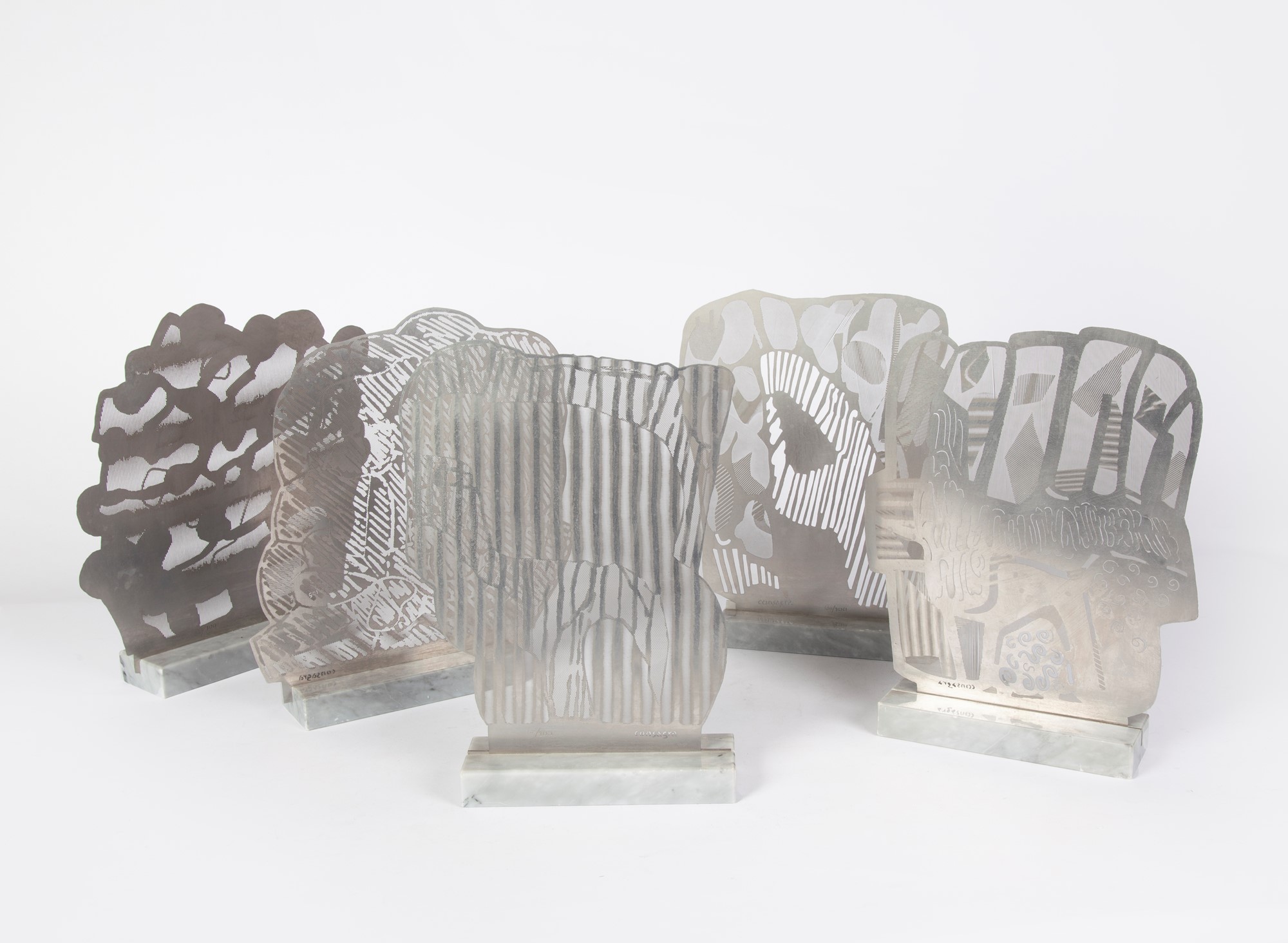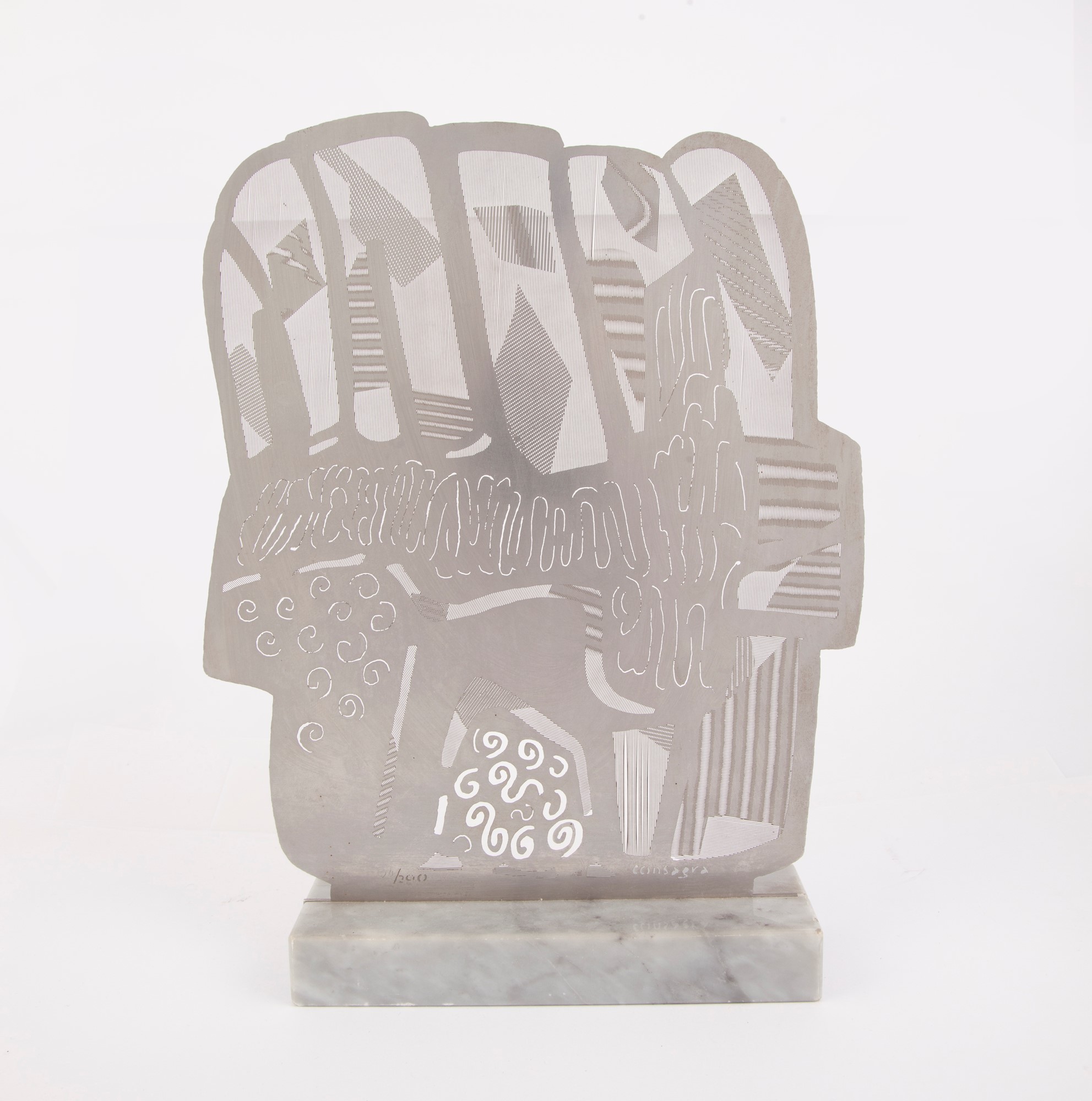 Scultura in alluminio con base in marmo cm 25x20 l'una