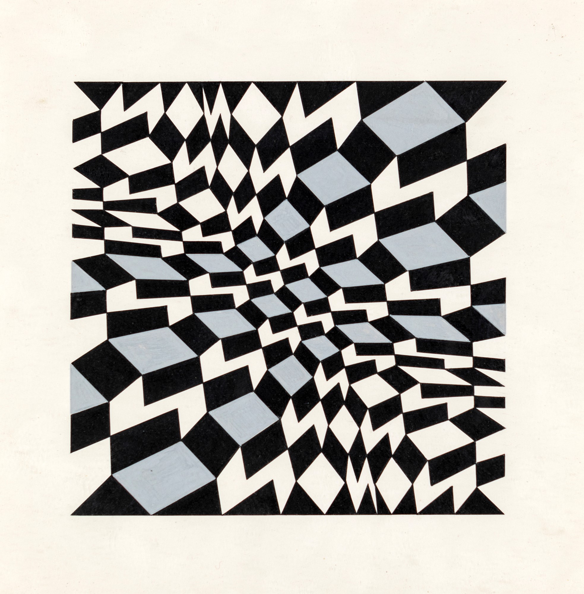 Al verso reca firma, titolo e data "Franco Grignani 1980, Intertensioni, tecnica mista". Timbro dello studio Franco Grignani