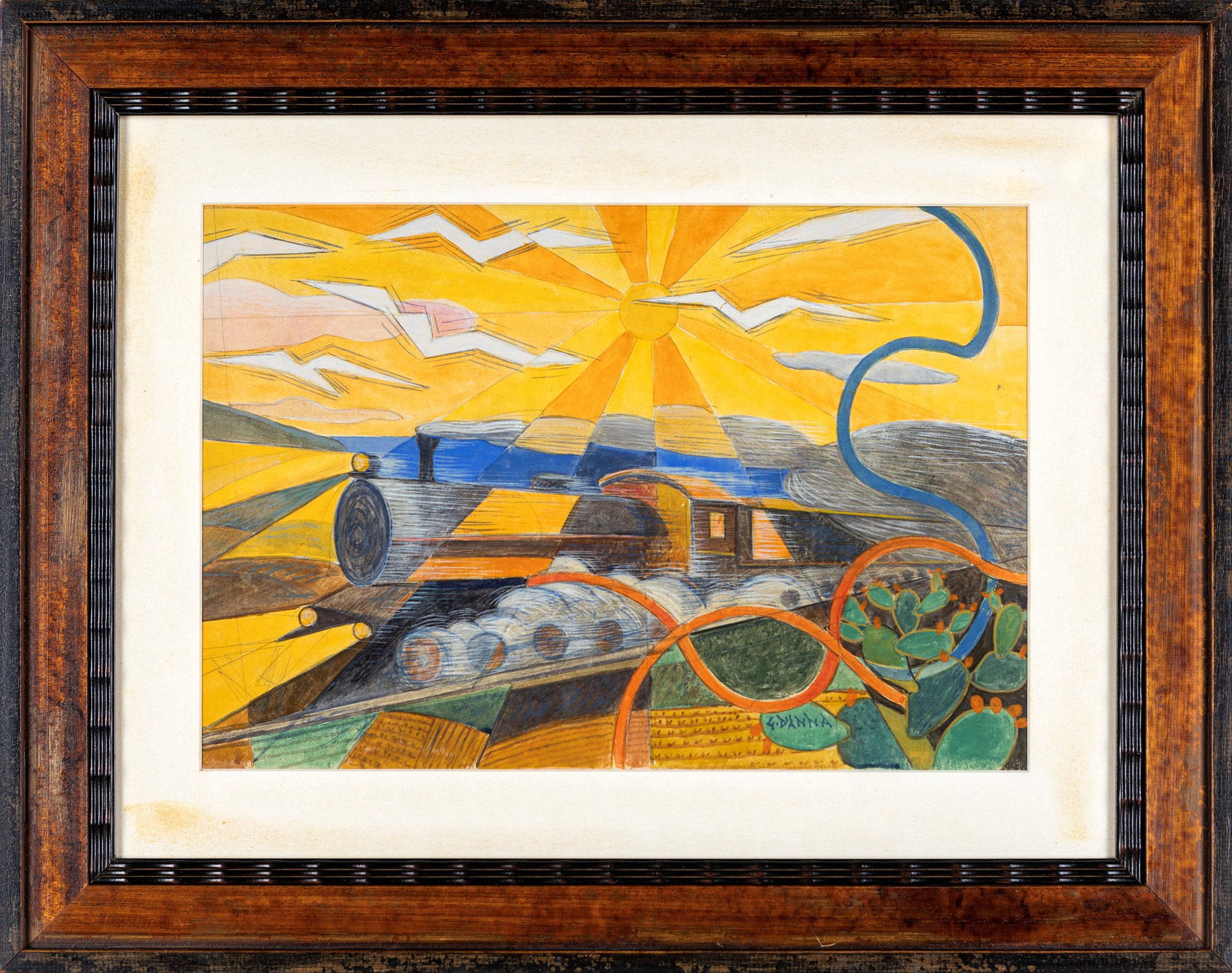 Giulio D'Anna (Villarosa, 1908 - Messina, 1978) Dinamismo di un treno in...