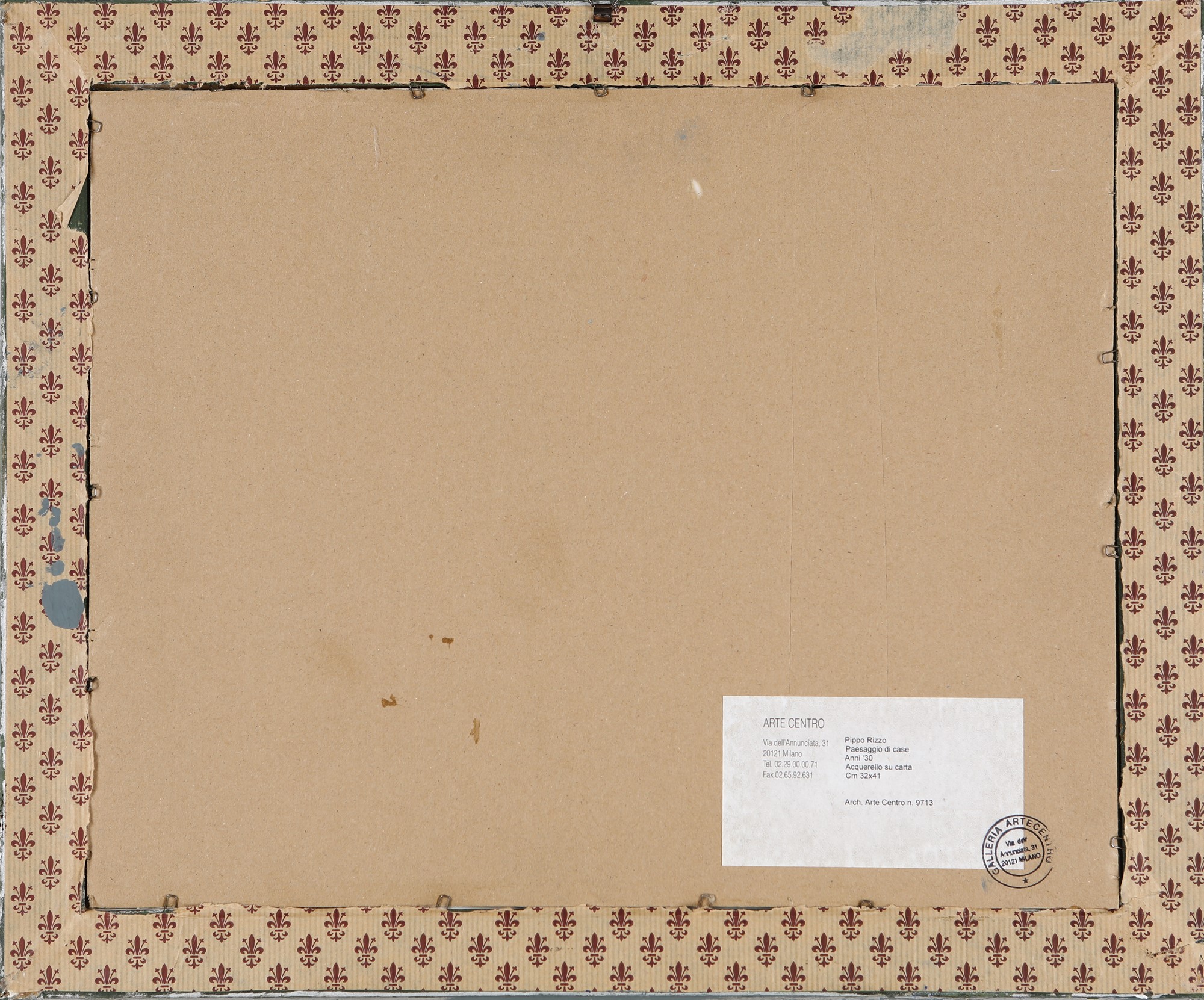 Firmato con monogramma in basso a destra "PR". Al verso reca etichetta della galleria Arte Centro, Milano. Misure in cornice cm 44x54