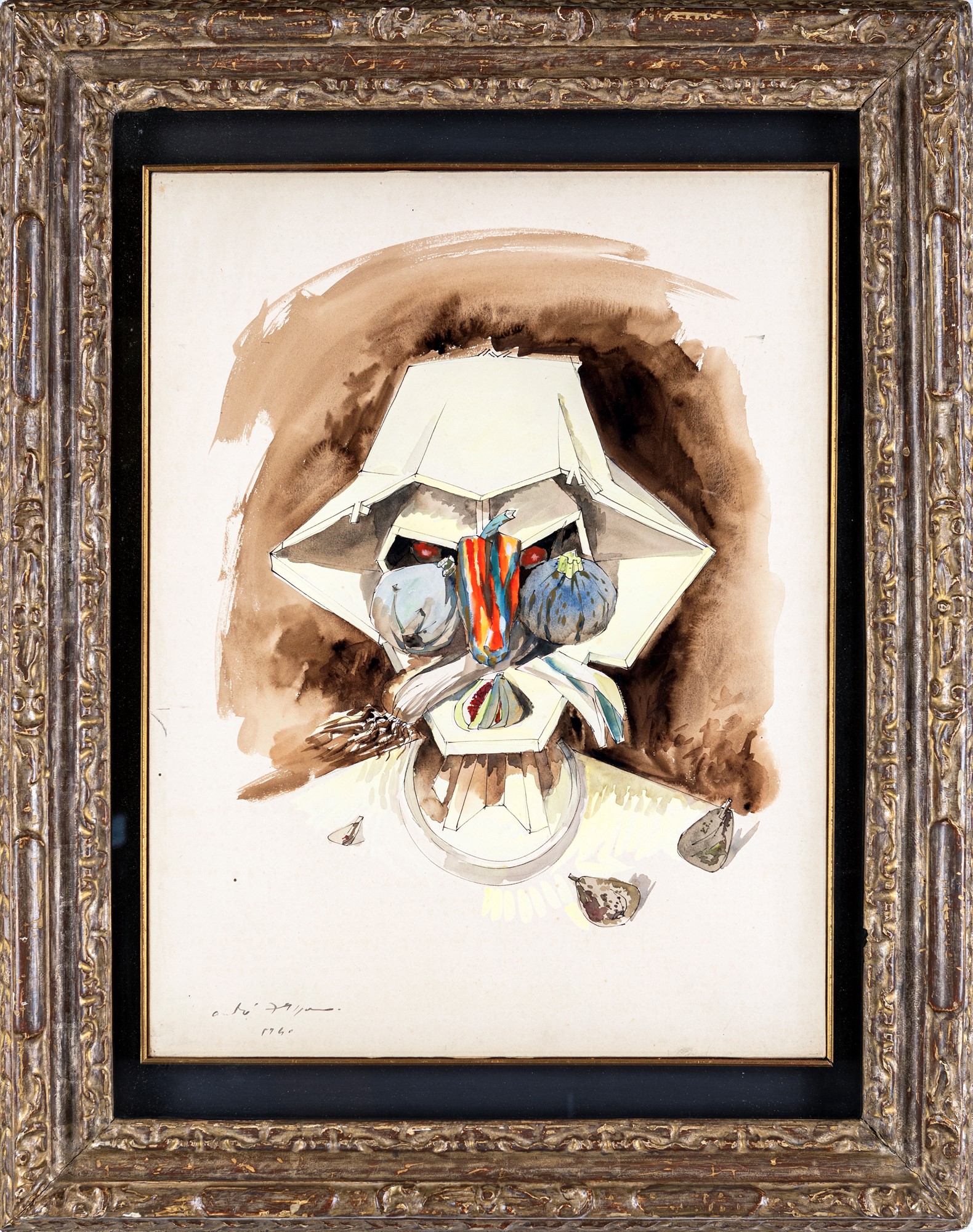 Matita, china e acquarello su carta applicata su tela cm 65x50 - in cornice cm 90x72