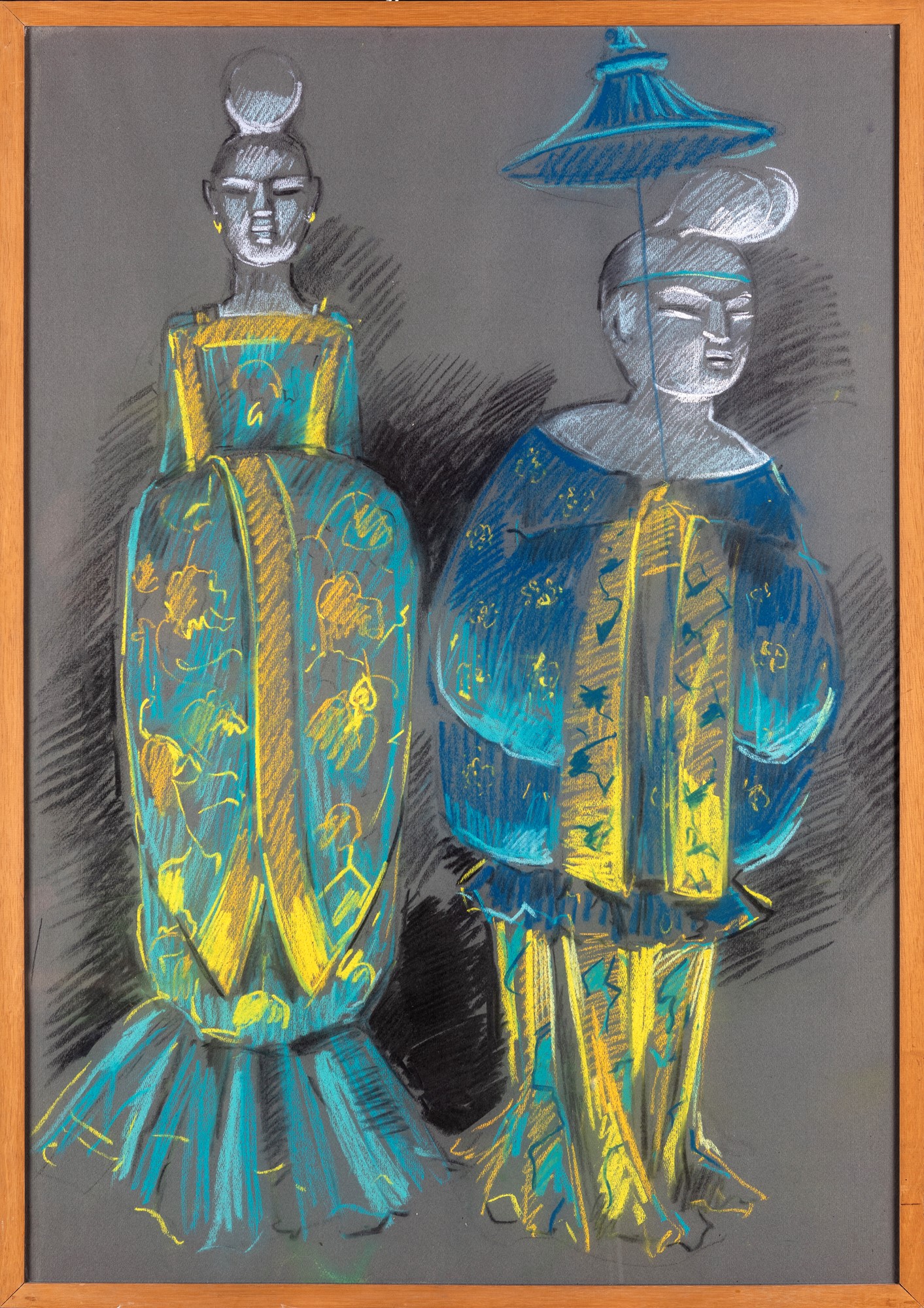 Maschere Giapponesi per sfilata di moda - Bozzetto per Roma di Federico Fellini 1972