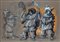 Maschere festanti - bozzetto per Roma di Federico Fellini 1972